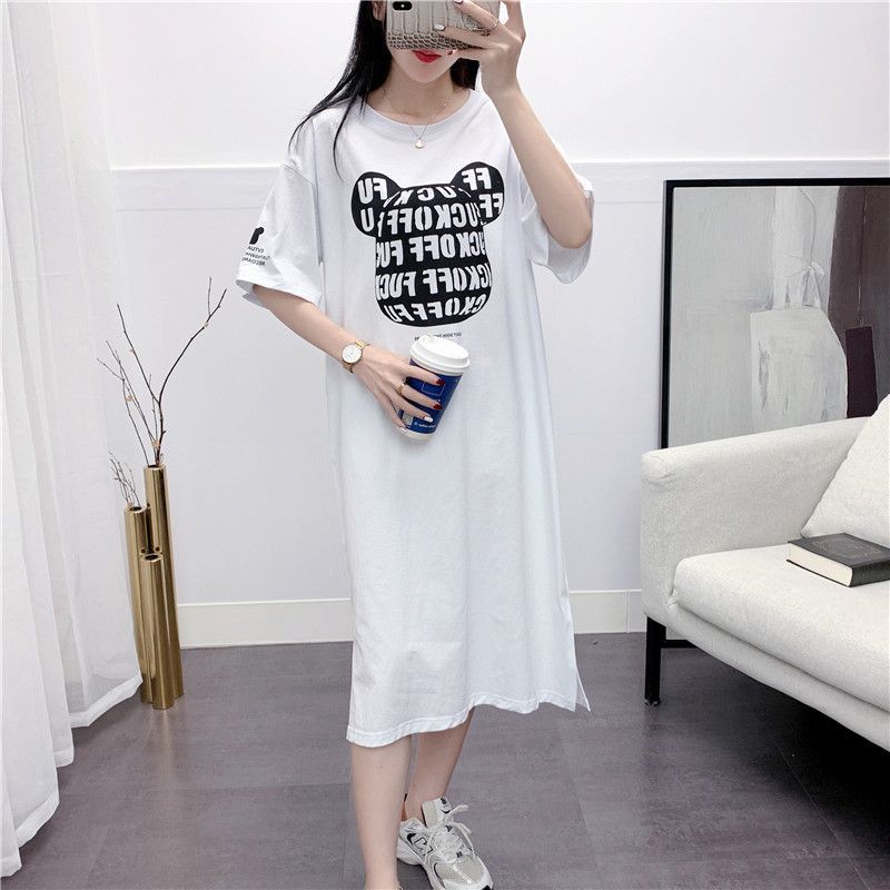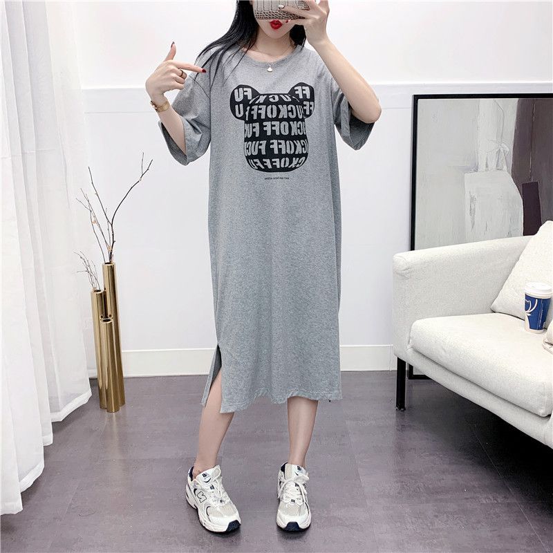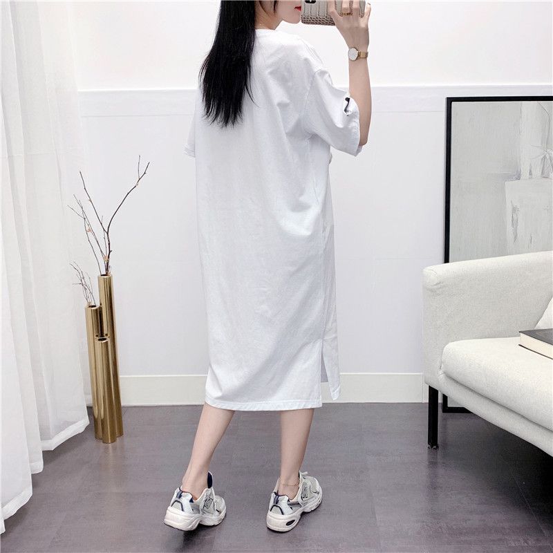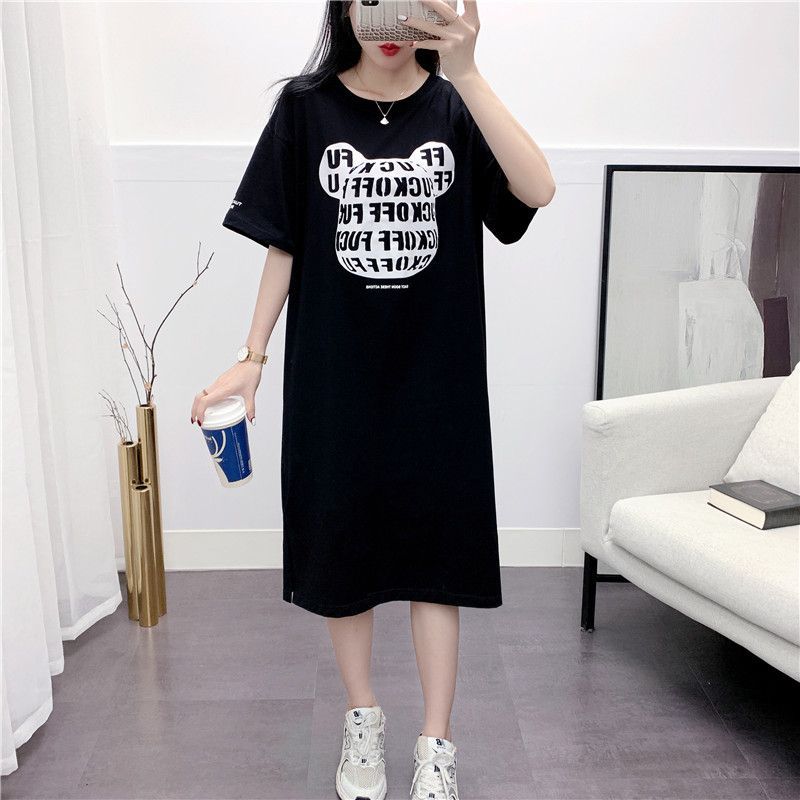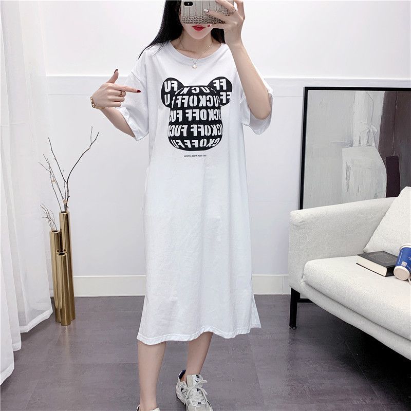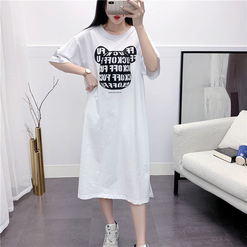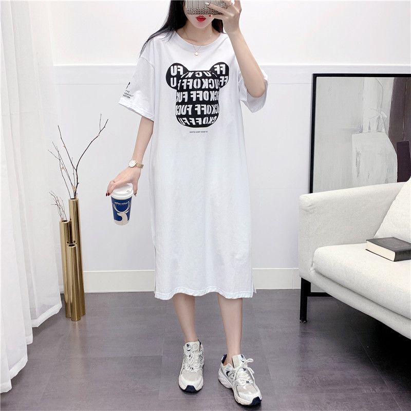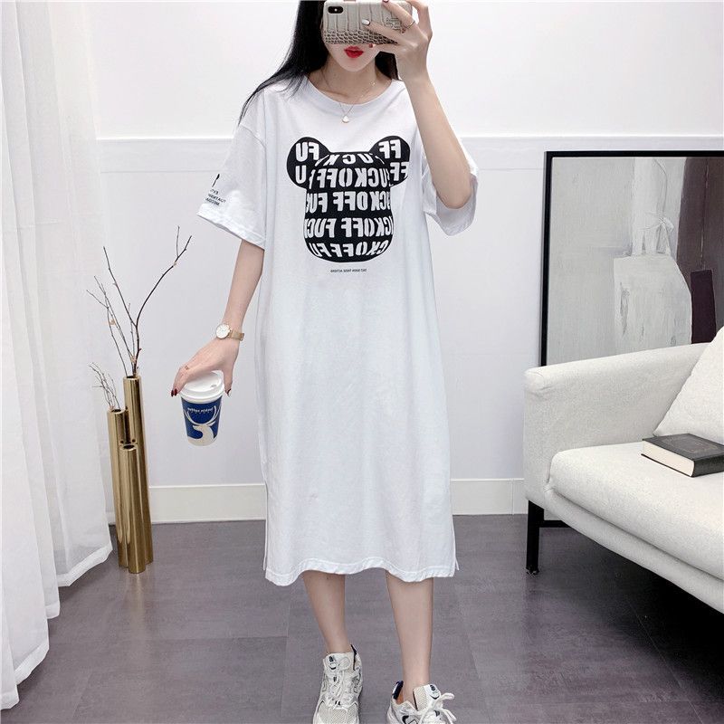 코튼 원피스 임산부 반팔 티셔츠 여성의 2025 여름 느슨한 플러스 사이즈 중간 길이의 캐주얼 게으른 원피스스토어 가기