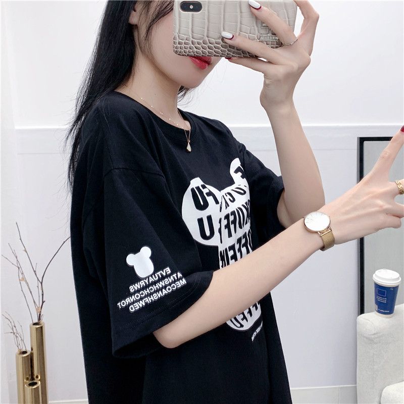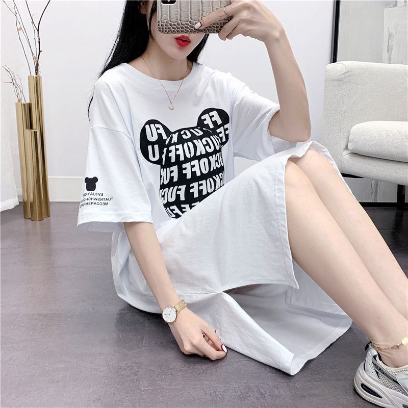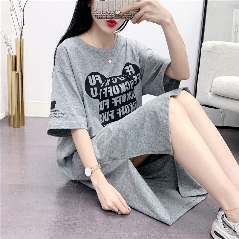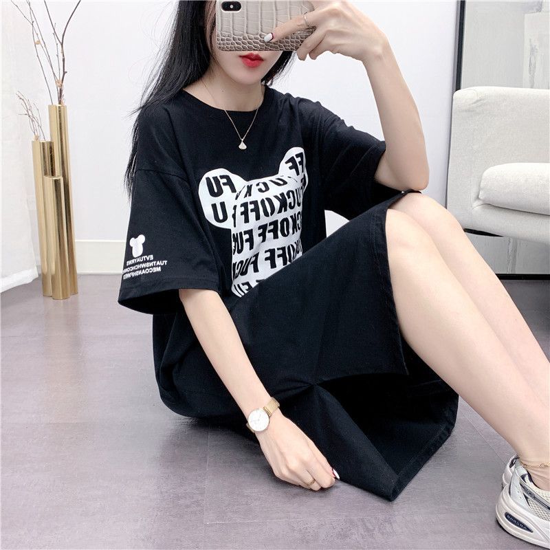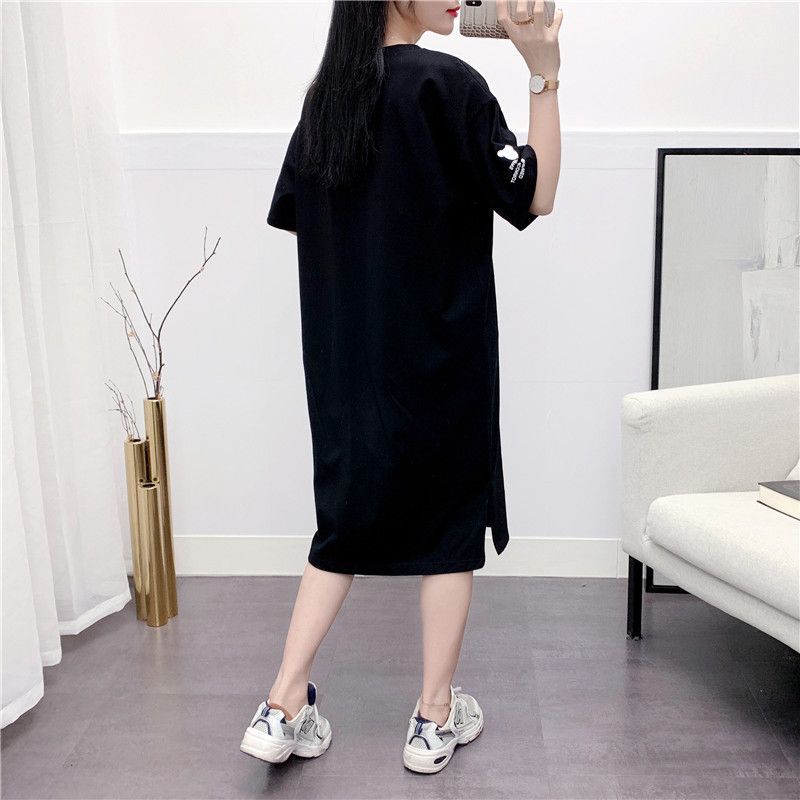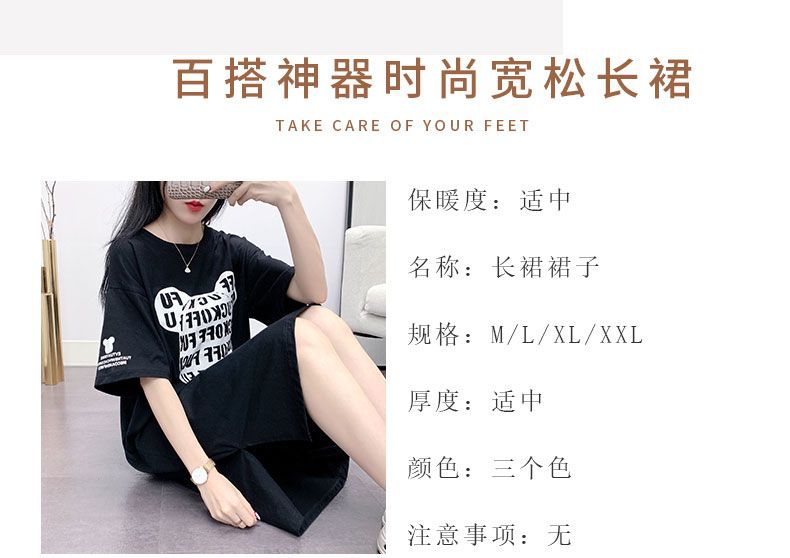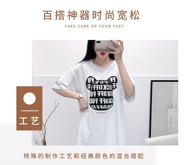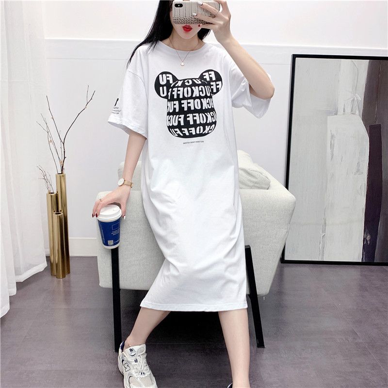 코튼 원피스 임산부 반팔 티셔츠 여성의 2025 여름 느슨한 플러스 사이즈 중간 길이의 캐주얼 게으른 원피스스토어 가기