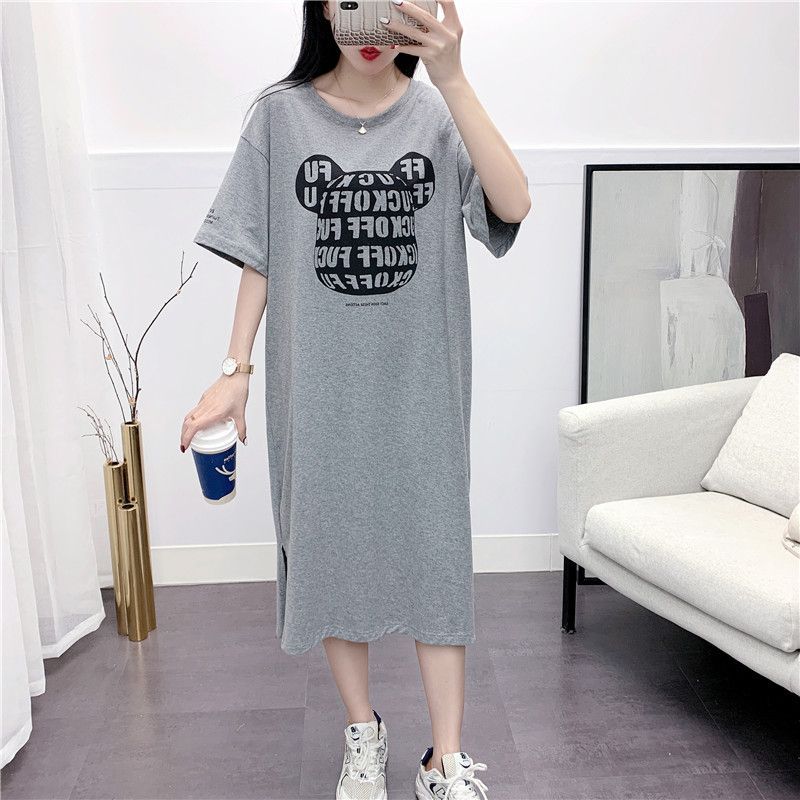 코튼 원피스 임산부 반팔 티셔츠 여성의 2025 여름 느슨한 플러스 사이즈 중간 길이의 캐주얼 게으른 원피스