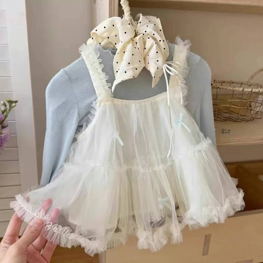 소녀 세트 봄과 가을 2025 새로운 한국 스타일 소녀의 서양식 달콤한 슬링 스커트베이스 레이어 셔츠 청바지