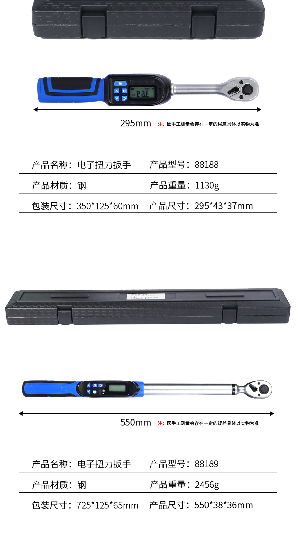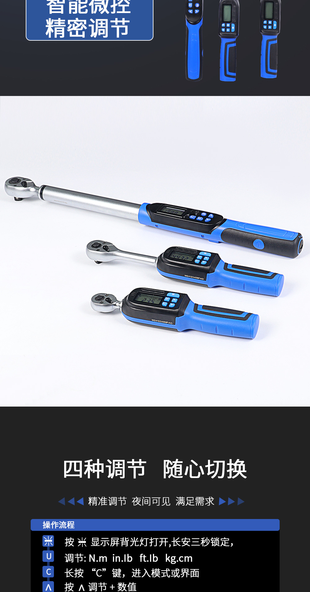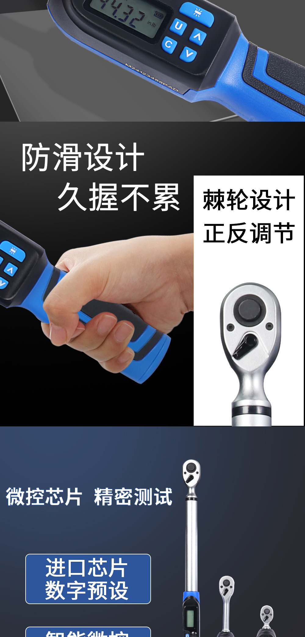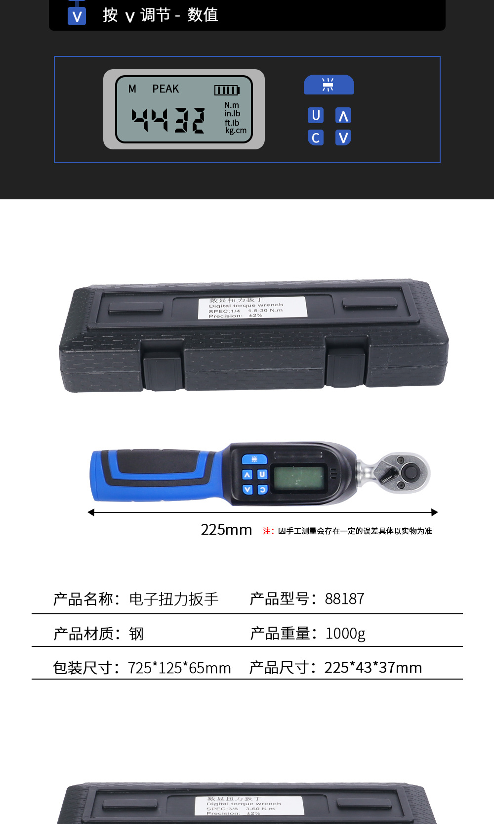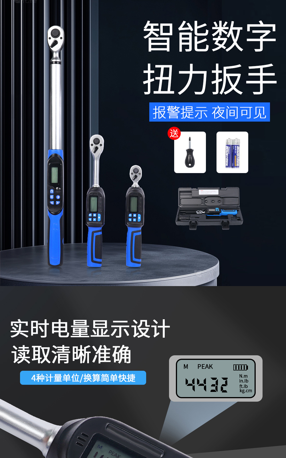 디지털 디스플레이 고정밀 토크 렌치 조절 가능한 힘 및 토크 ±2% 고정밀 전동 알람 기능 포함 동저 하드웨어