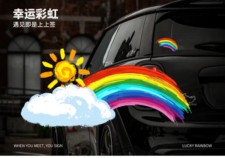 자오 지 고양이 자동차 스티커 개인화 된 창조적 인 재미 행운의 무지개 스티커 바디 스크래치 커버 스티커 전기 자동차 장식 스티커스토어 가기