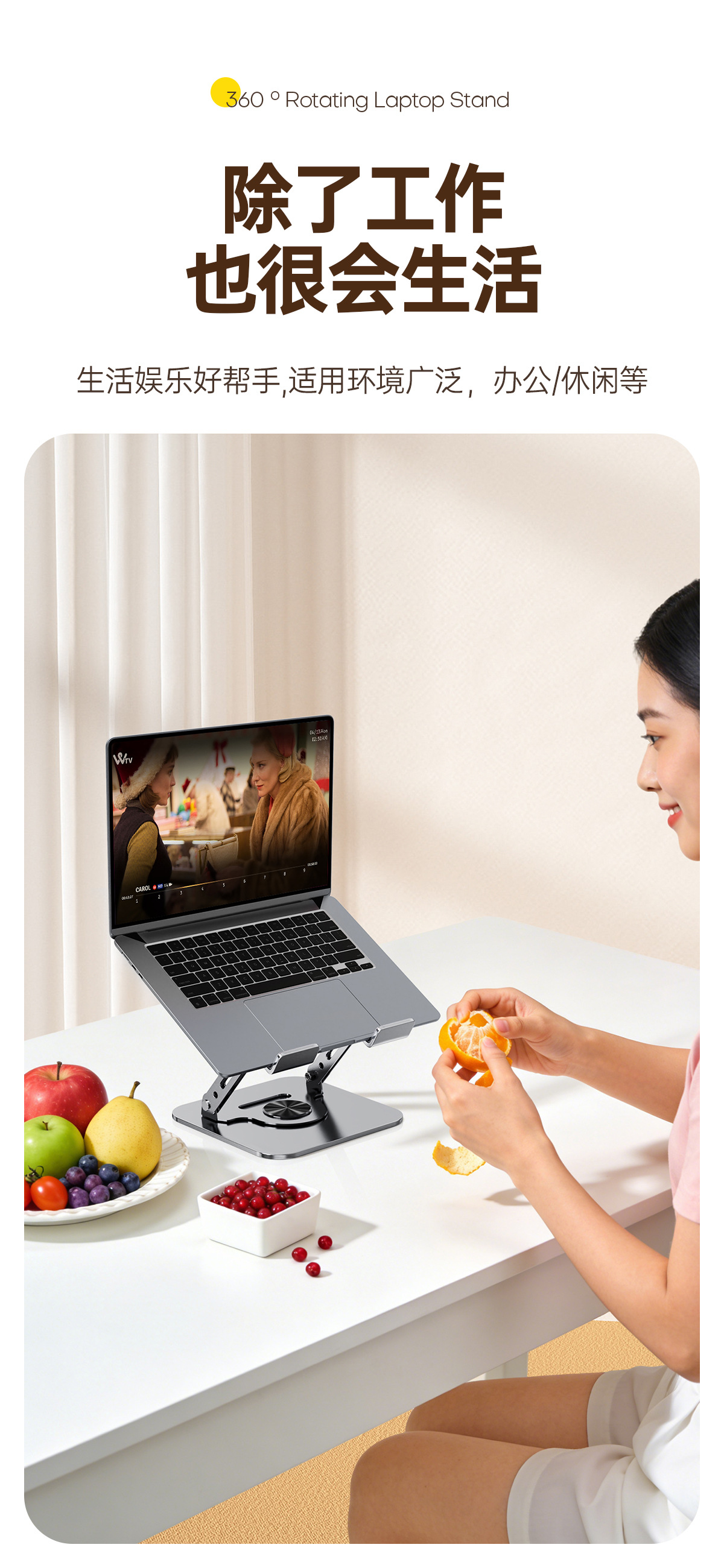 • 【스페이스 그레이】 듀얼 축 지지 + 자유로운 높이 조절 + 360도 회전 ° 회전