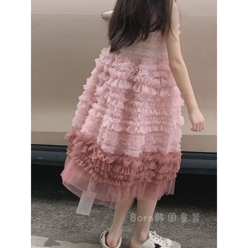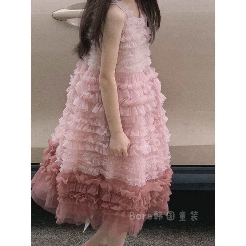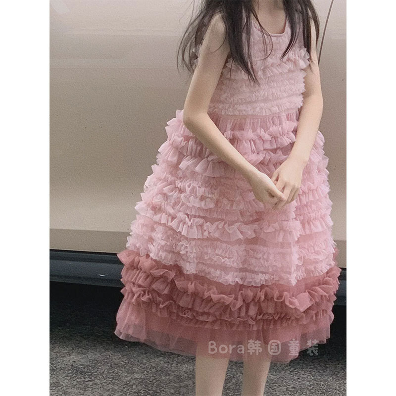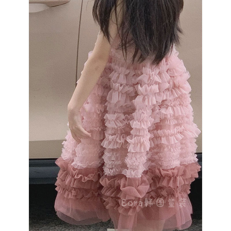 여아 드레스 봄 여름 2025 새로운 고급 중대형 어린이 공주 드레스 핑크 생일 케이크 드레스 유행