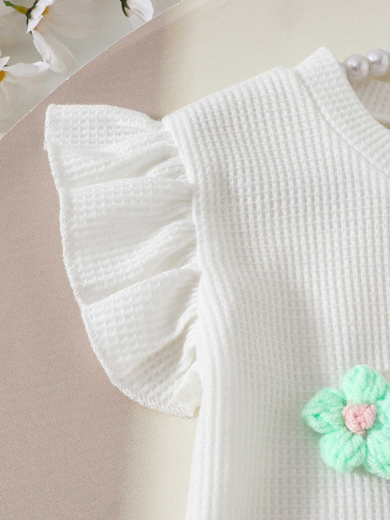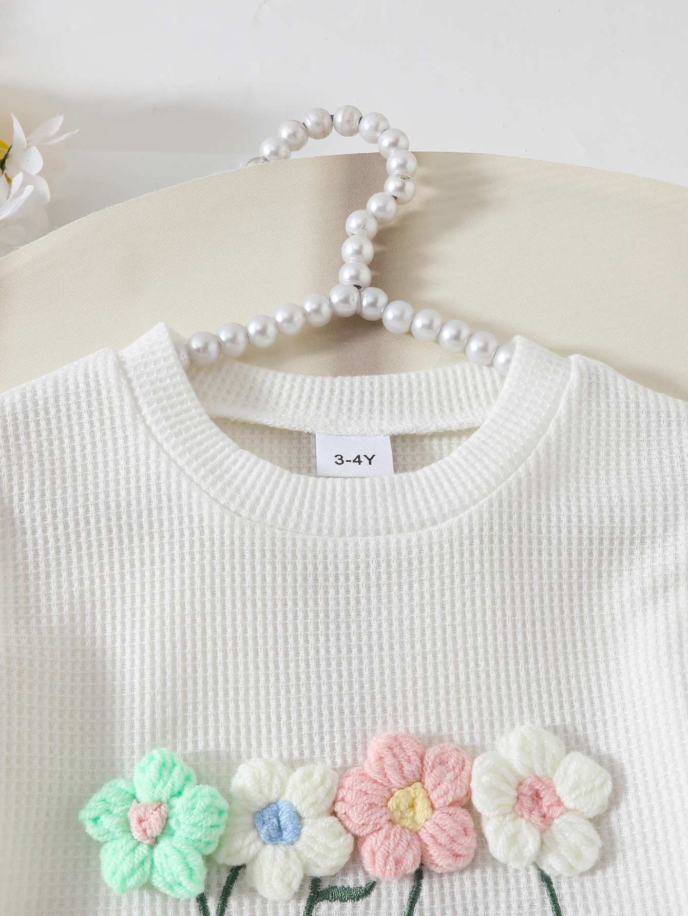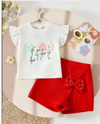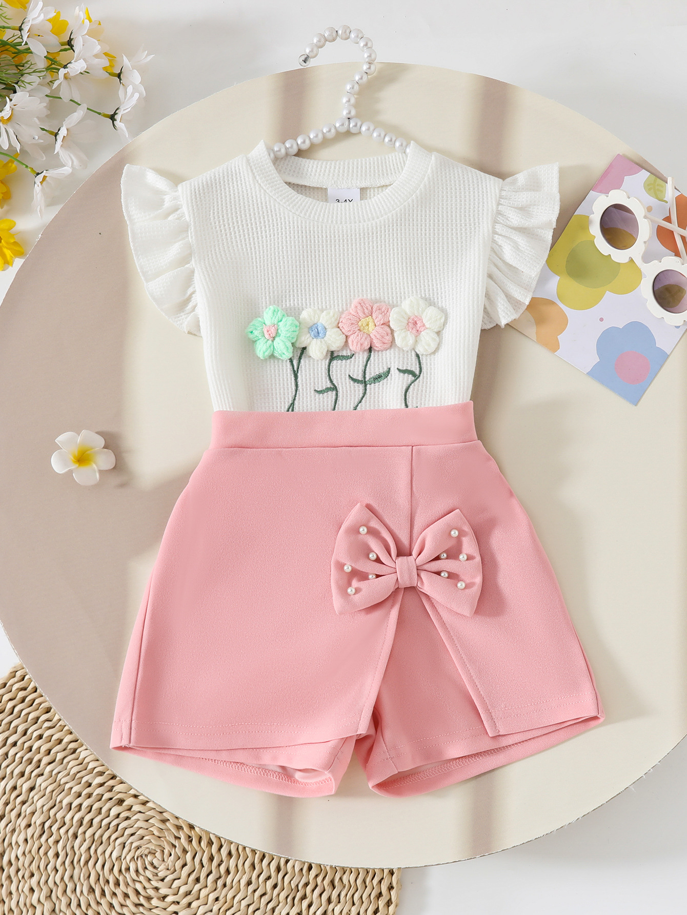 대외 무역 아동복 소녀 봄과 여름 새로운 3 차원 꽃 와플 탑 하프 스커트 바지 활 구슬스토어 가기