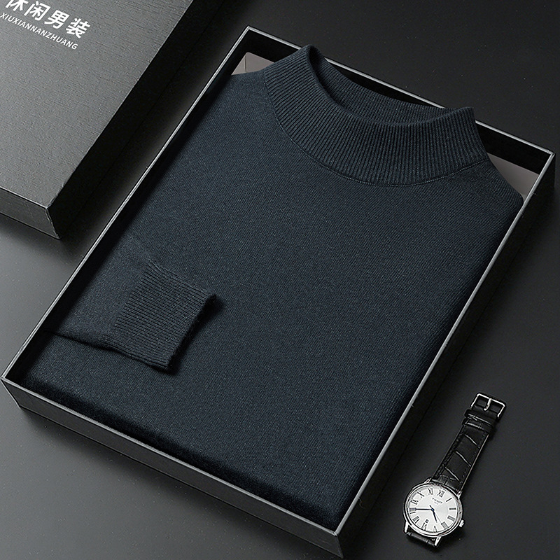 9 색상 옵션] 세미 하이 칼라 단색 스웨터 남성용 둥근 목 스웨터 캐주얼 패션베이스 셔츠 젊고 중년의 간단한스토어 가기