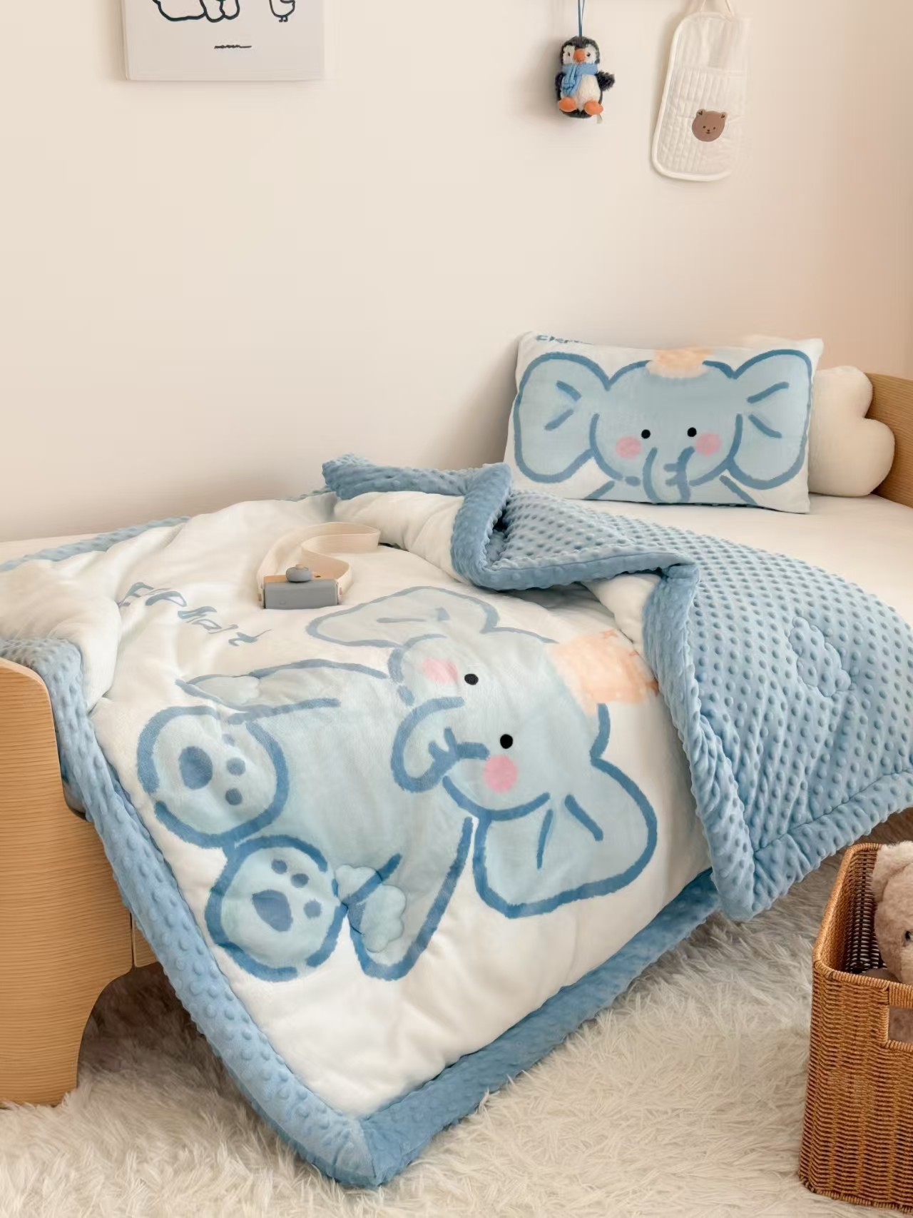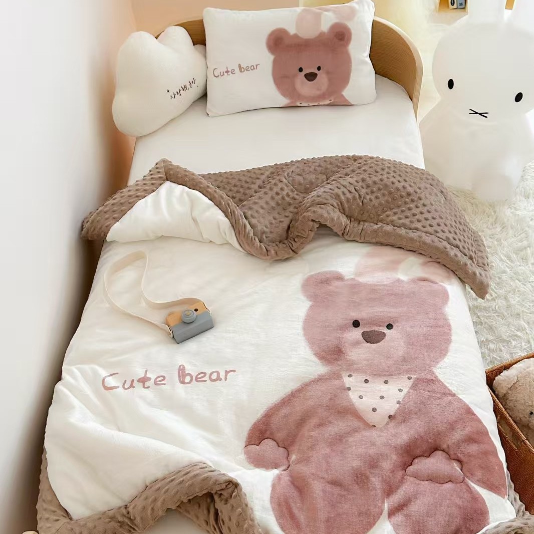 엄마와 아기용 밀크벨벳 어린이 빈티지 이불 유치원 아기 빈티지 벨벳 안심 이불 양면 벨벳 두꺼운 겨울 이불