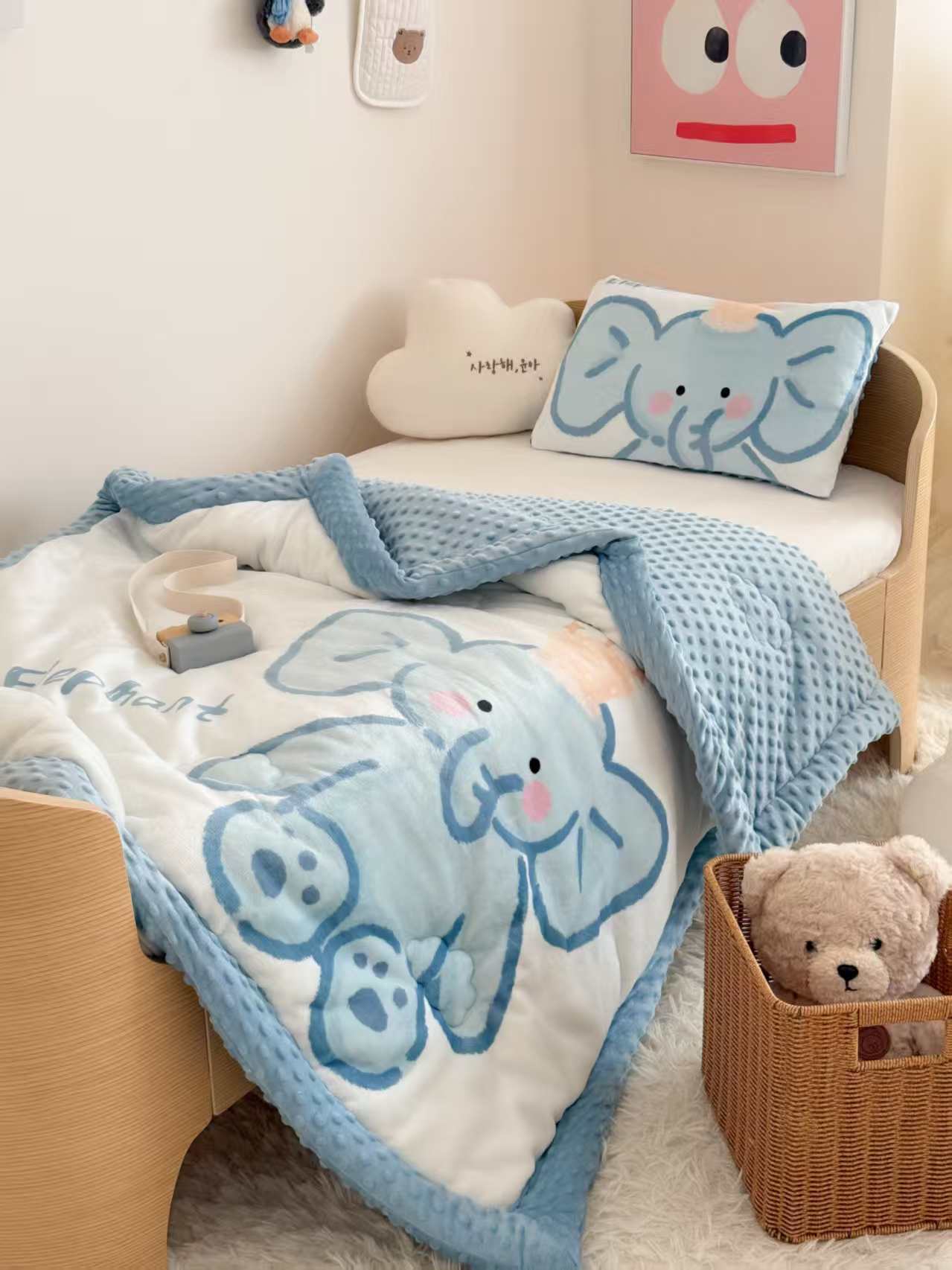 엄마와 아기용 밀크벨벳 어린이 빈티지 이불 유치원 아기 빈티지 벨벳 안심 이불 양면 벨벳 두꺼운 겨울 이불스토어 가기