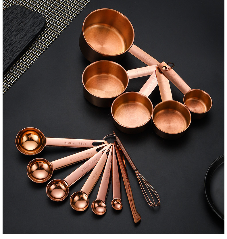 • [로즈골드] 430 커피스푼클립 + 원형손잡이 자포함 7종세트 + 계량컵 5종세트 (브라운박스)