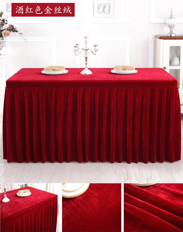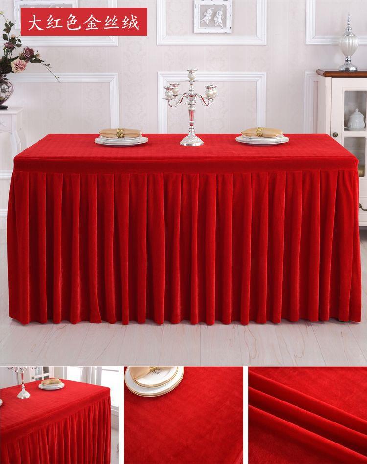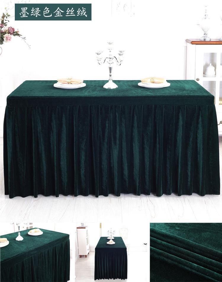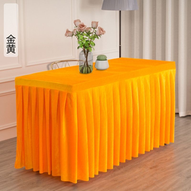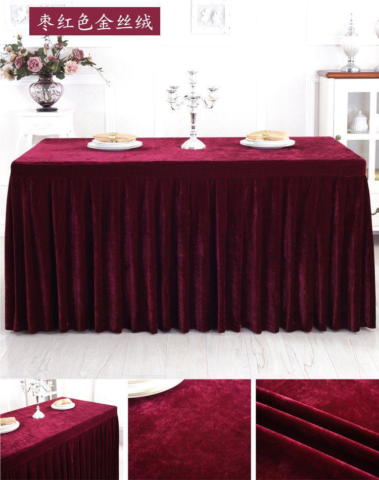 두꺼운 골드 벨벳 회의 식탁보와 테이블 스커트, 웨딩 로그인 디스플레이 식탁보, 호텔 콜드 디너 주름 테이블 스커트