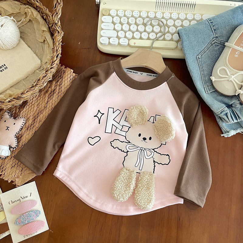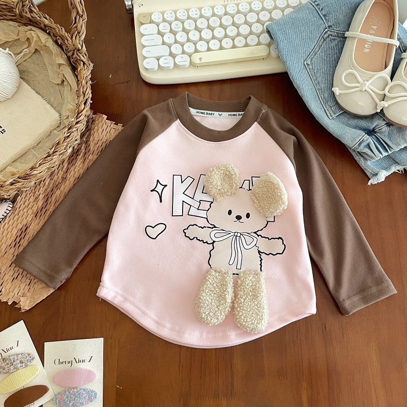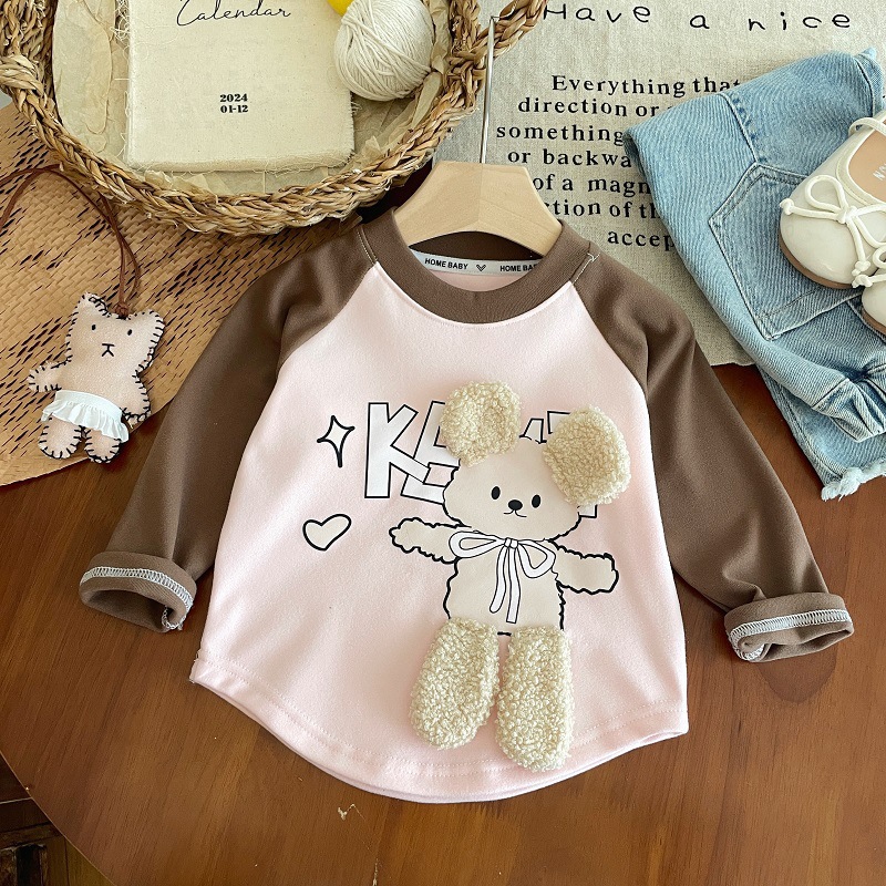 여아 가을 겨울 긴팔 티셔츠, 베이비 걸들을 위한 새로운 라운드 넥 바닥 셔츠, 다재다능하고 스타일리시한 이너웨어, 따뜻한 상의스토어 가기