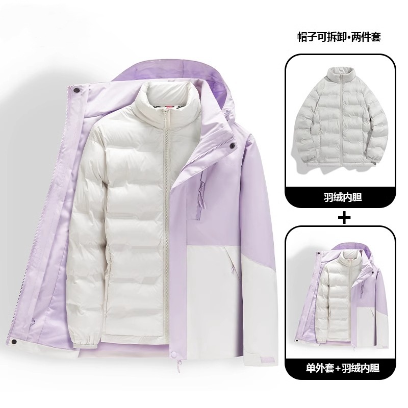 충전 재킷 다운 재킷 여성 2025 신식 야외 방풍 방수 작은 남성용 3 대 1 등산 세트스토어 가기