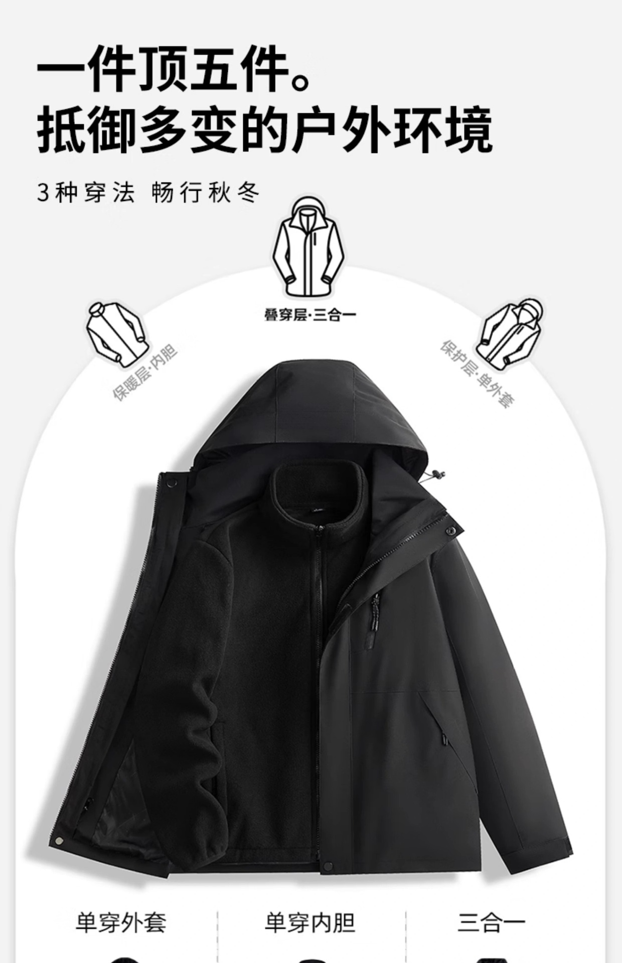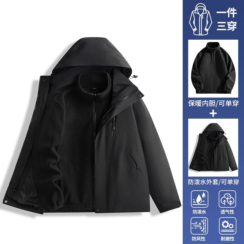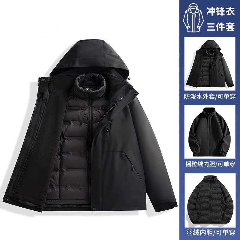 • 남녀 동일 스타일 - 블랙 [재킷+폴라 플리스 안감+다운 안감] 3종세트