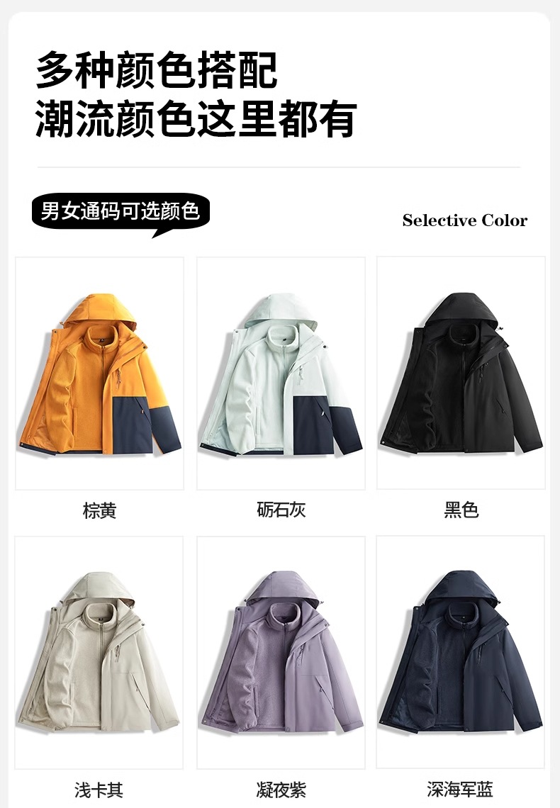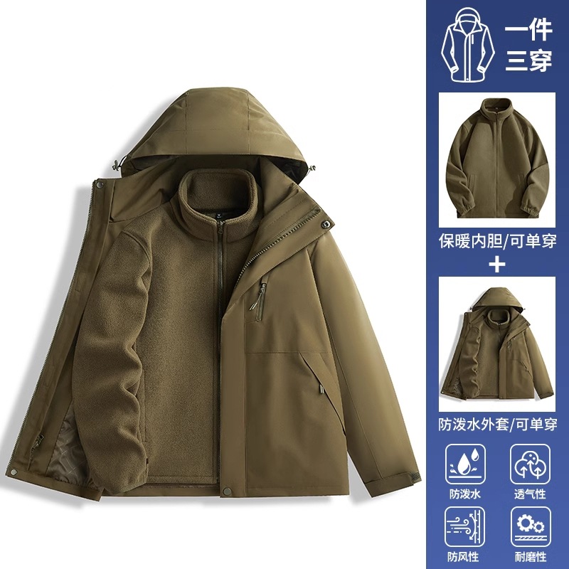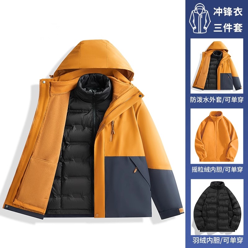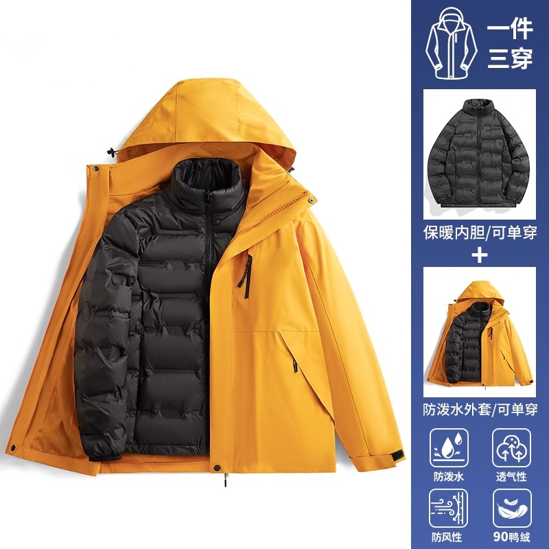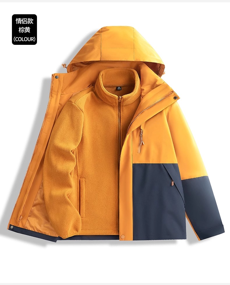 • 남녀 동일 스타일 - 브라운과 옐로우 [재킷+폴라 플리스 안감+다운 안감] 3종세트