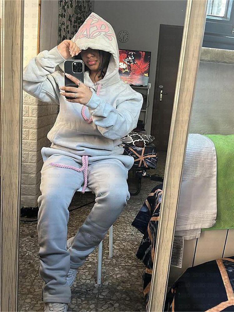 가을과 겨울 패션 브랜드 인쇄 느슨한 스웨터 Y2K 힙합 스트리트 착용 남성과 여성의 풀오버 캐주얼 세트