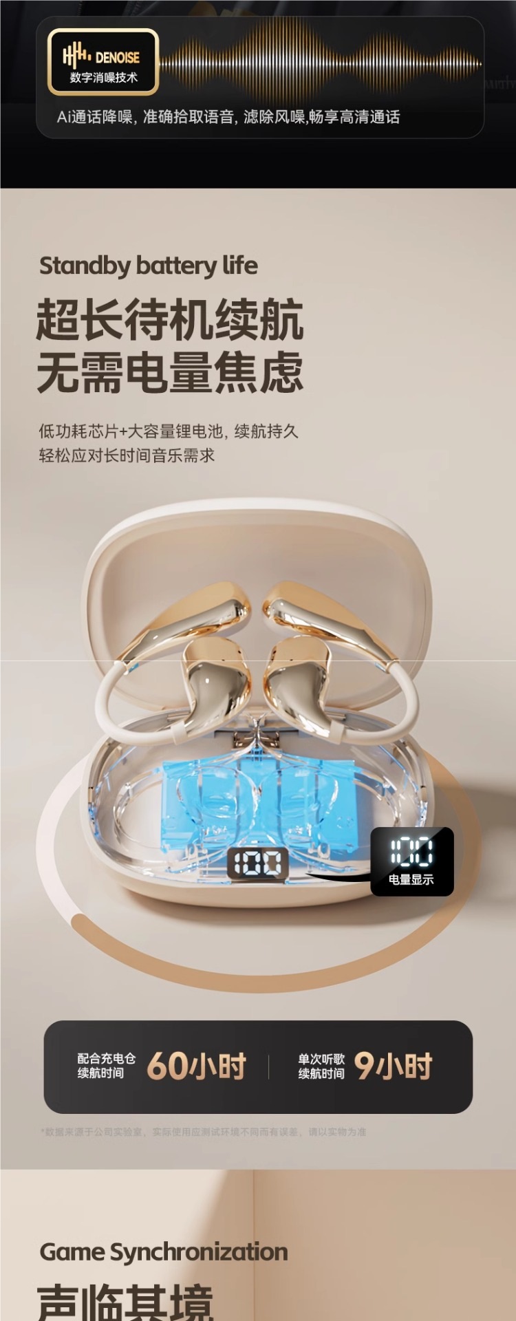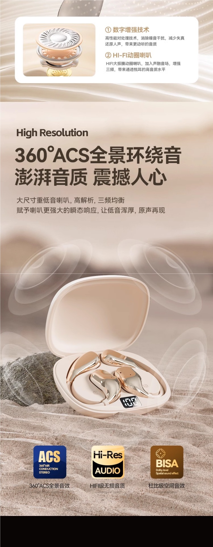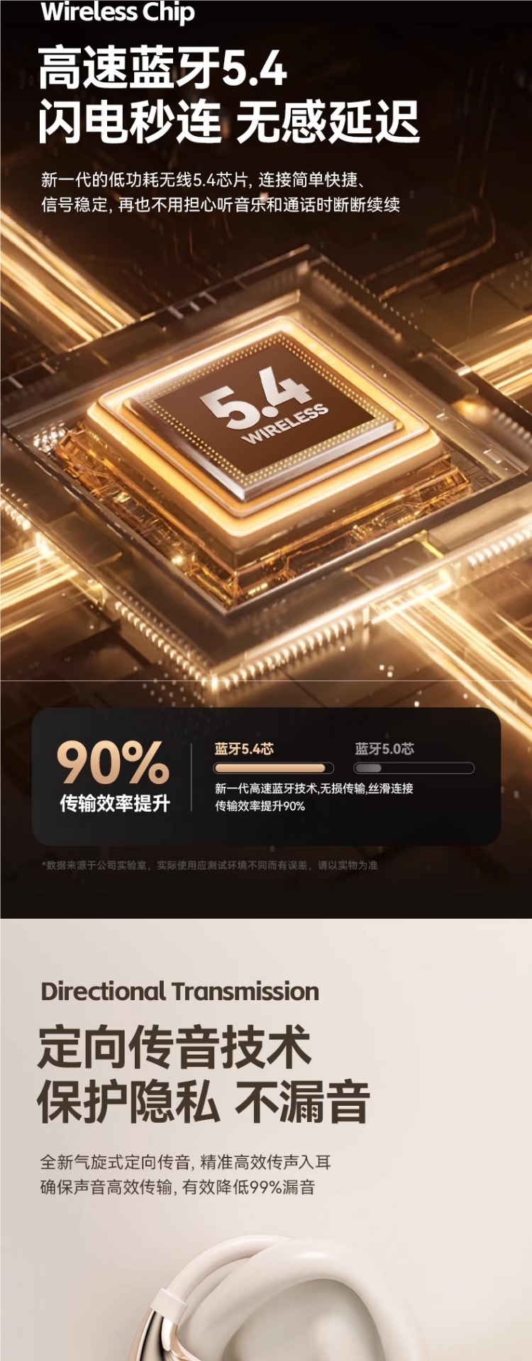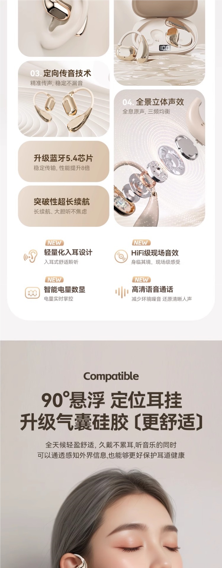 • Haoyuebai [고급 버전] 고속 듀얼 칩 5.4 Bluetooth⭐360°파노라마 서라운드 경험⭐음향 누출 없이 구름 같은 착용⭐ENC 매우 선명한 소음 감소 통화⭐