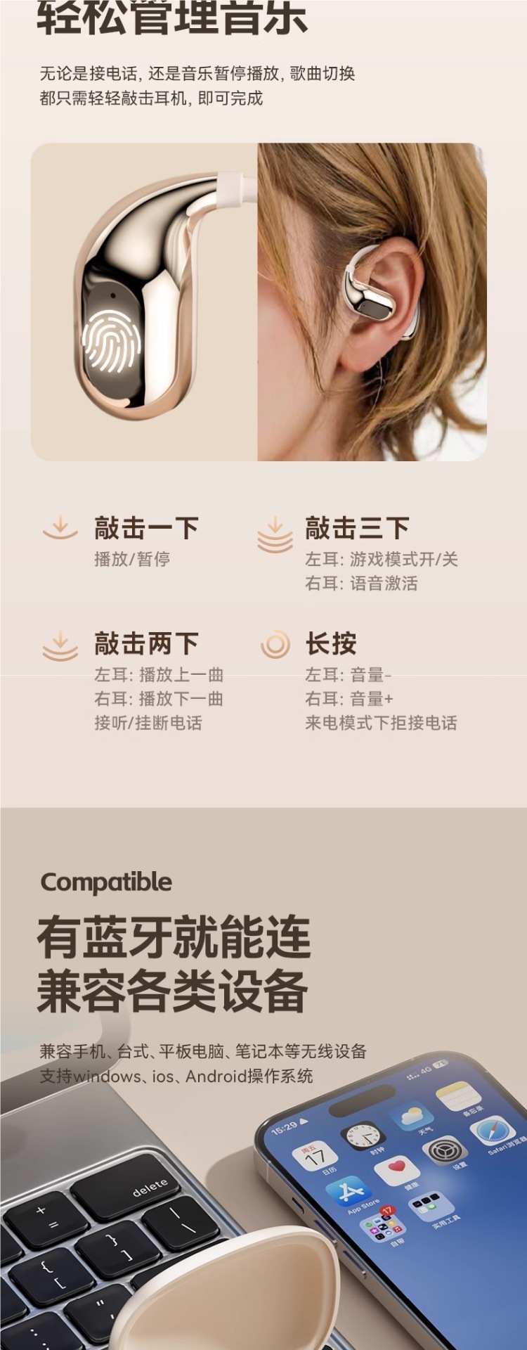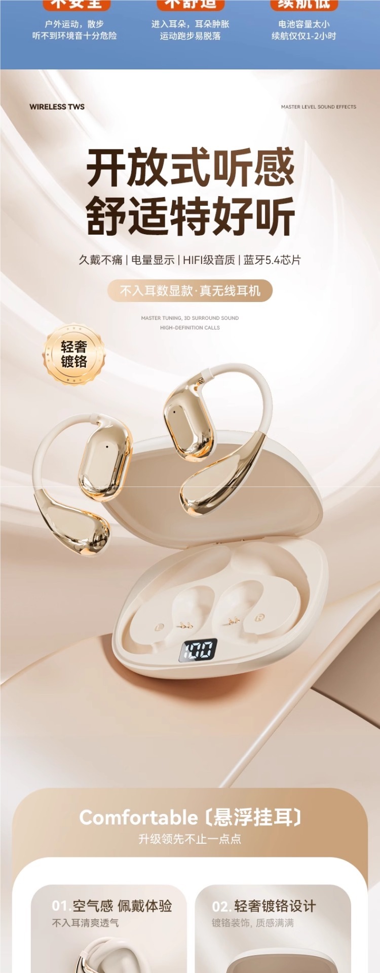 Voice of Berlin 2025 새로운 블루투스 헤드셋 귀 끈 골전도 무선 비인이어 남성 및 여성 러닝 스포츠스토어 가기