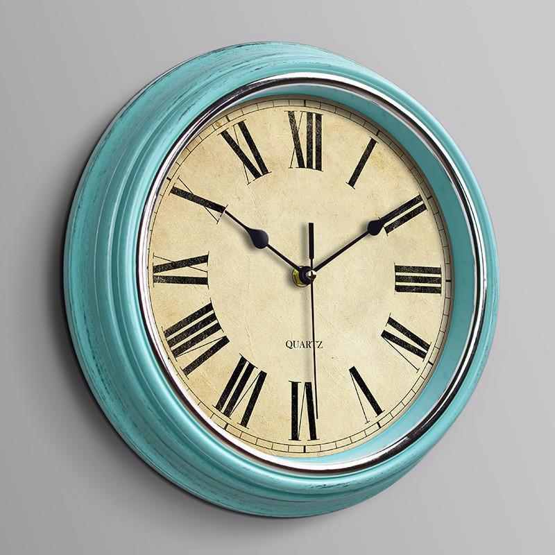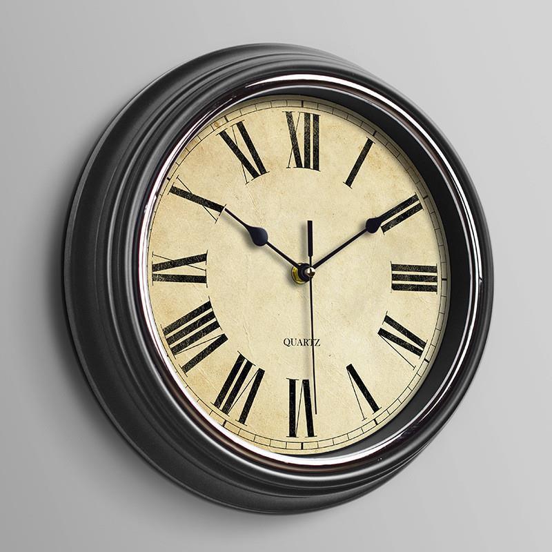 유럽 시계 미국 벽 시계 펀치 무료 복고풍 거실 조용한 시계 벽 라운드 대기 북유럽 돌스토어 가기