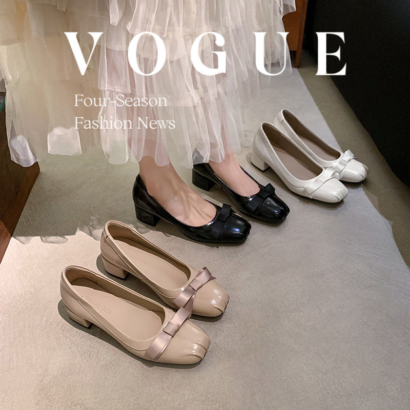 활 청키 힐 신발 여성 싱글 신발 이른 봄 새 도착 전체 가죽 양가죽 양가죽 둥근 발가락 얕은 입 신발 여성 신발 트렌디스토어 가기