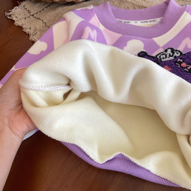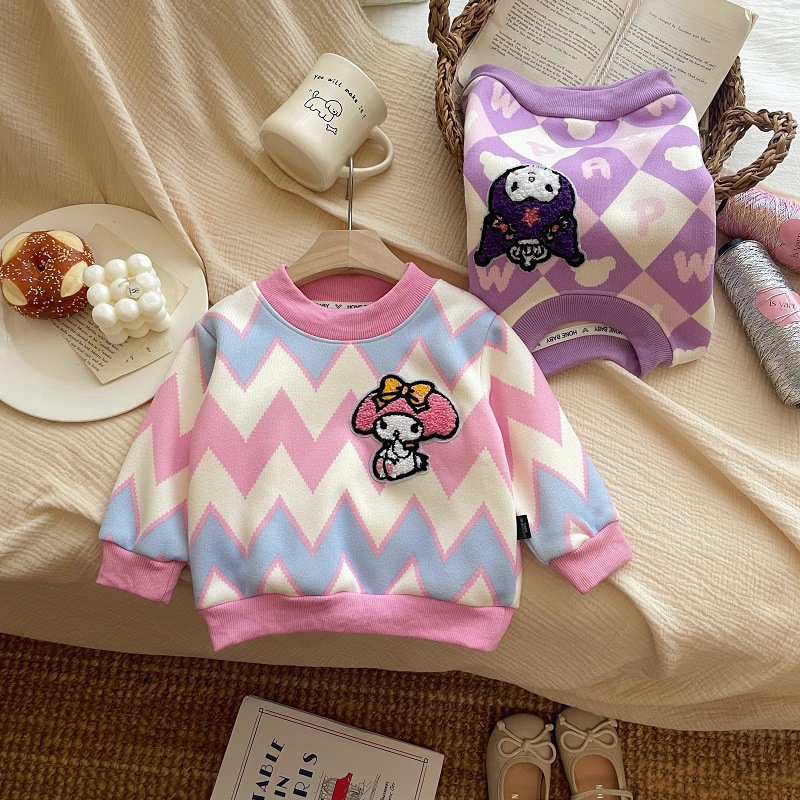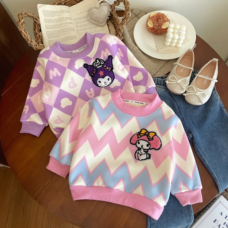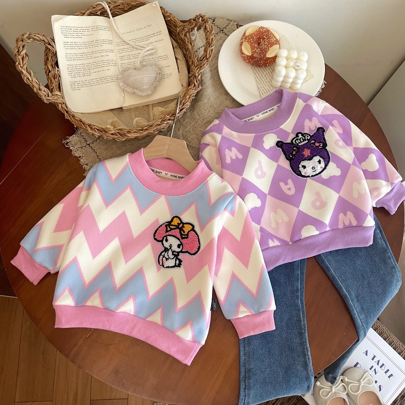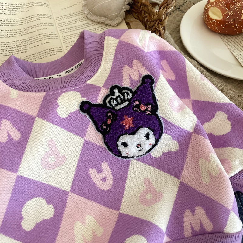 여자 우유 실크 운동복 가을, 겨울 긴팔 스웨터 아기 소녀 만화 Kuromi 따뜻한 기본 셔츠 달콤한 스타일스토어 가기