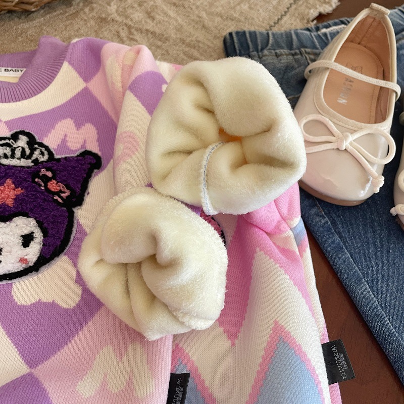 여자 우유 실크 운동복 가을, 겨울 긴팔 스웨터 아기 소녀 만화 Kuromi 따뜻한 기본 셔츠 달콤한 스타일