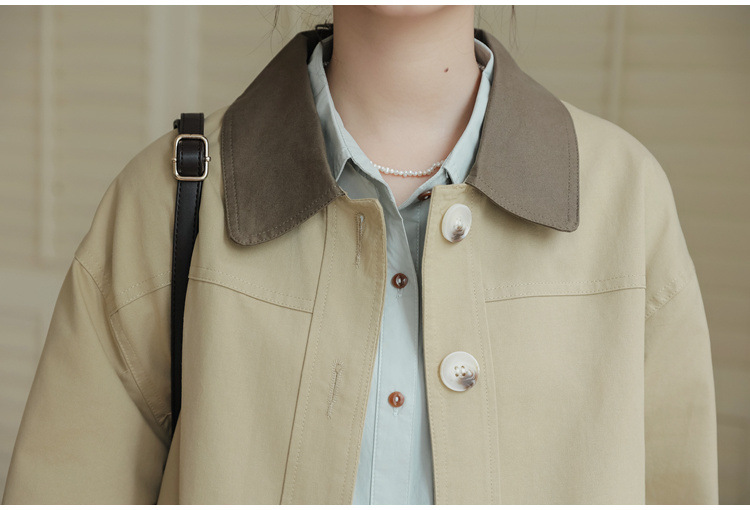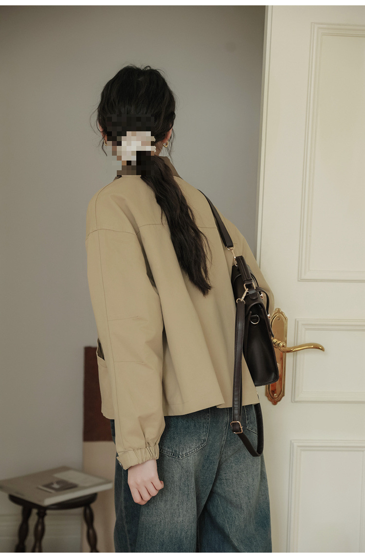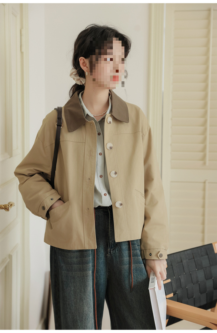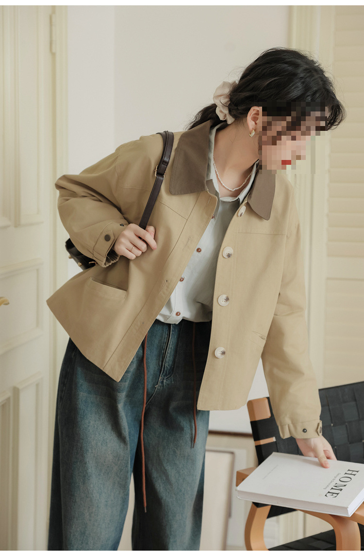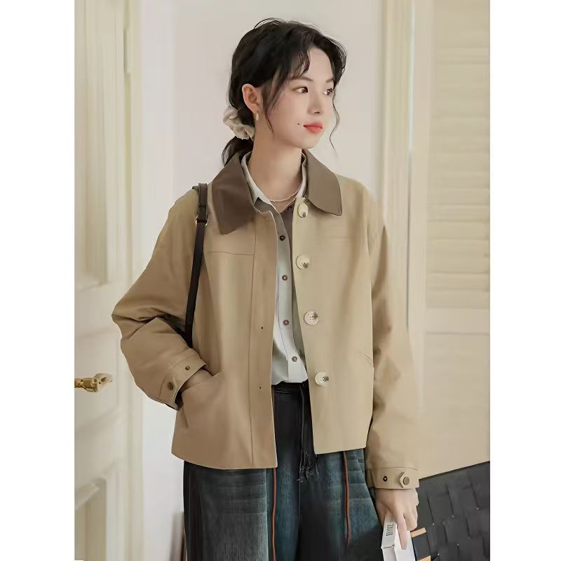일본 스타일 빈티지 콘트라스트 컬러 크록 코트 여성의 2024 봄 새로운 도착 캐주얼 루즈 짧은 재킷 탑스토어 가기