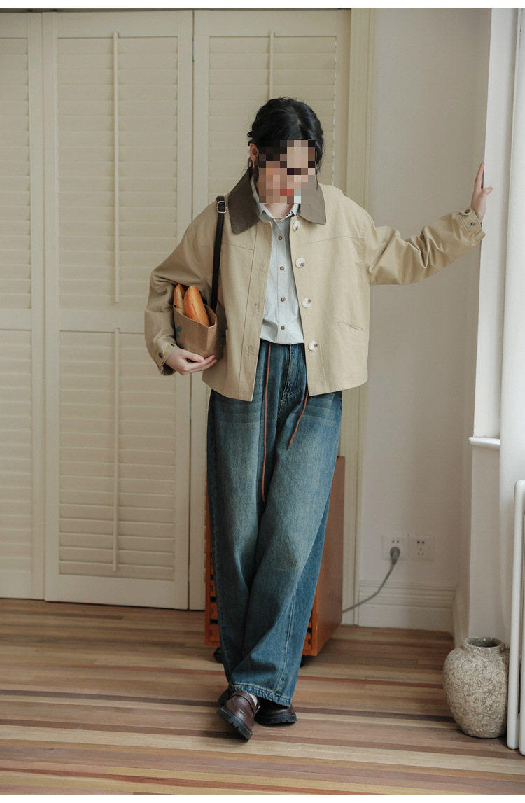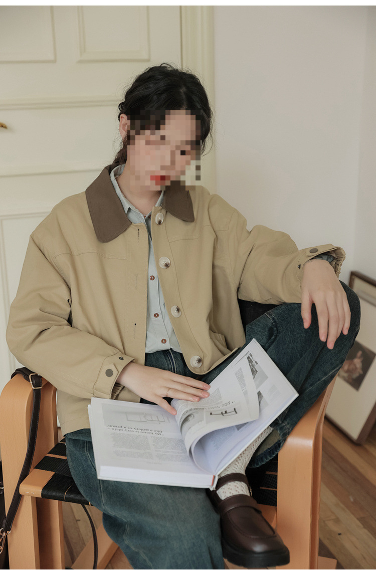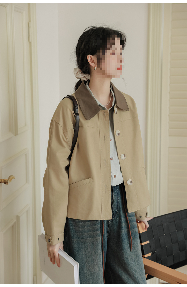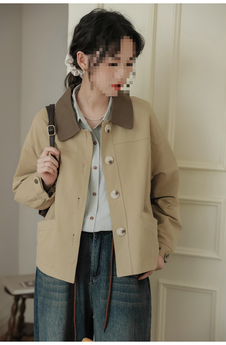 일본 스타일 빈티지 콘트라스트 컬러 크록 코트 여성의 2024 봄 새로운 도착 캐주얼 루즈 짧은 재킷 탑스토어 가기