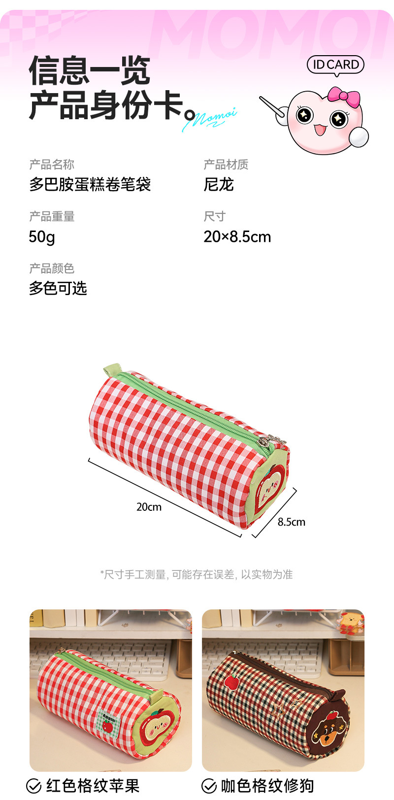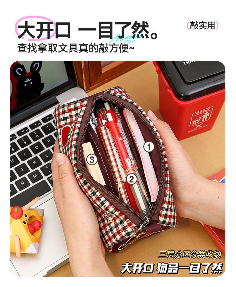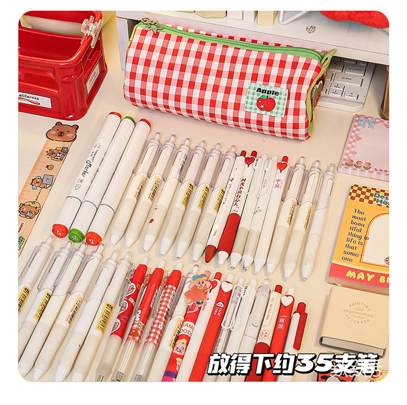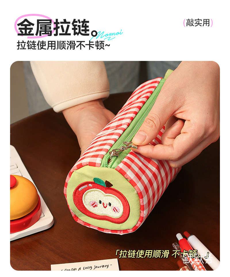 • 붉은 체크무늬 사과 (안감은 면으로 되어있어 문구류를 보호하고 필통의 내구성을 높여줍니다!)