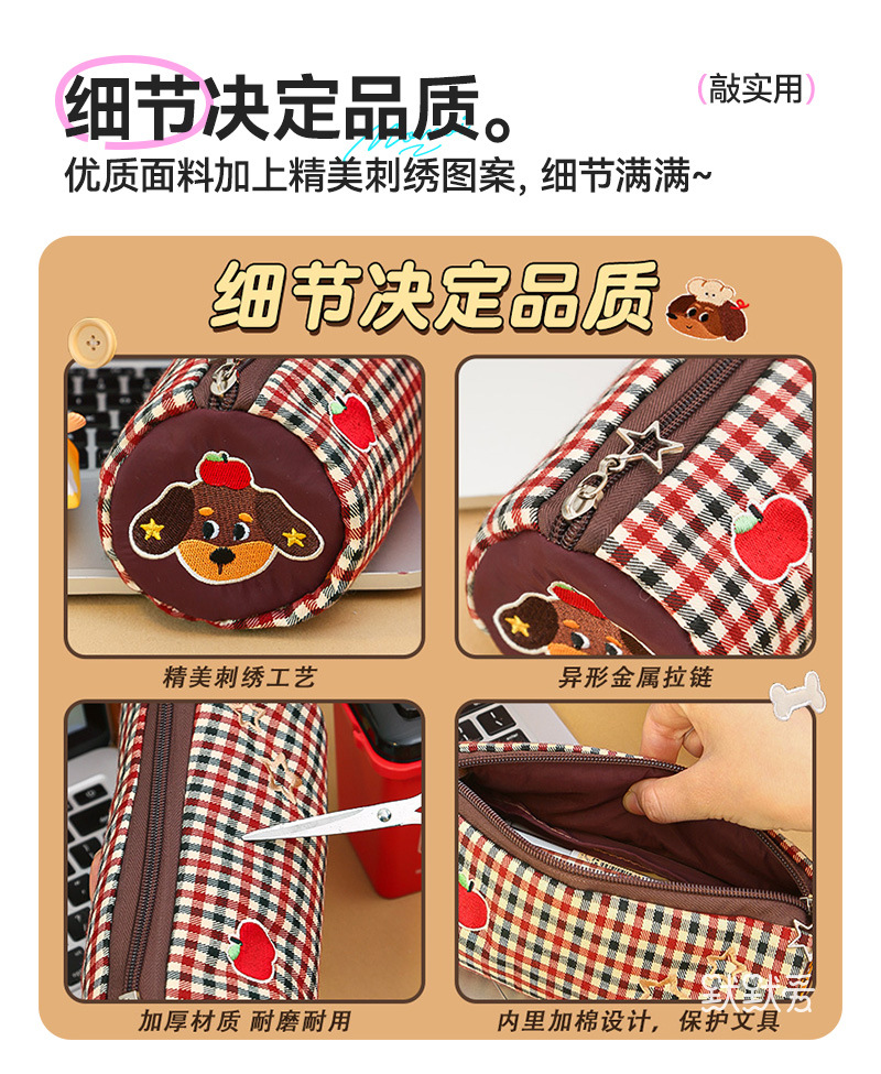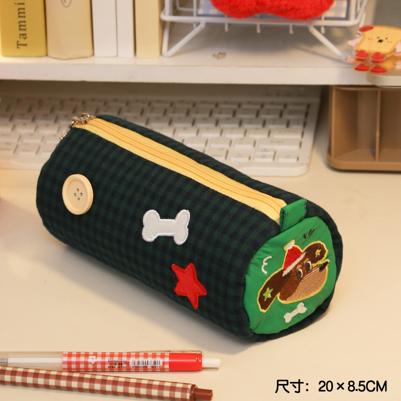 • 녹색 체크무늬 개 수리 (면 안감으로 문구류를 보호하고 필통의 내구성을 높였습니다!)