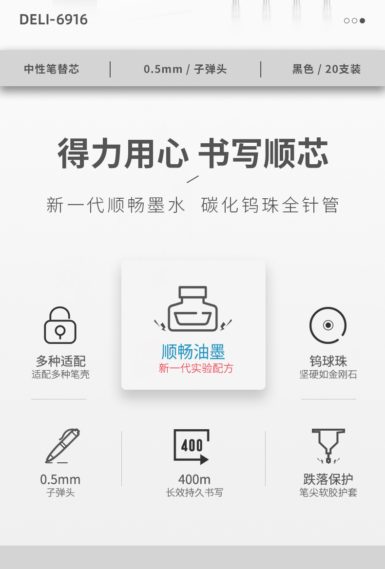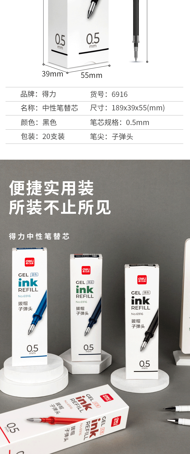 델리 중립 리필 6916 총알 중립 리필 블랙 0.5mm 물 리필 서명 사무실스토어 가기