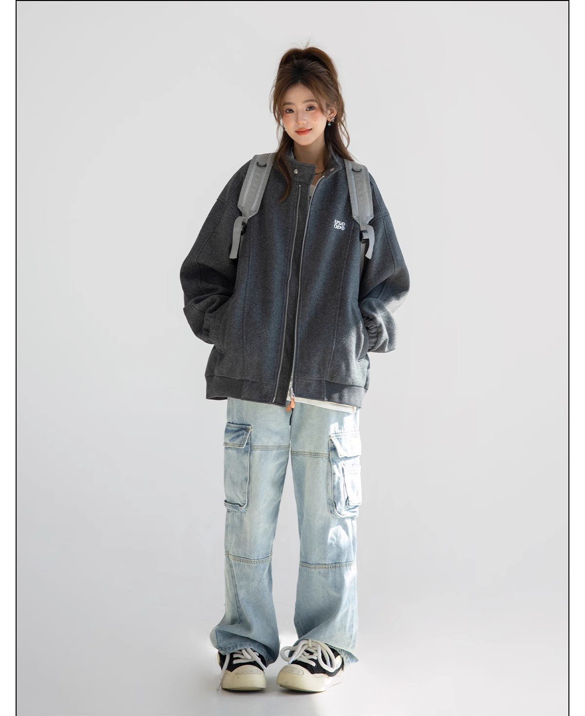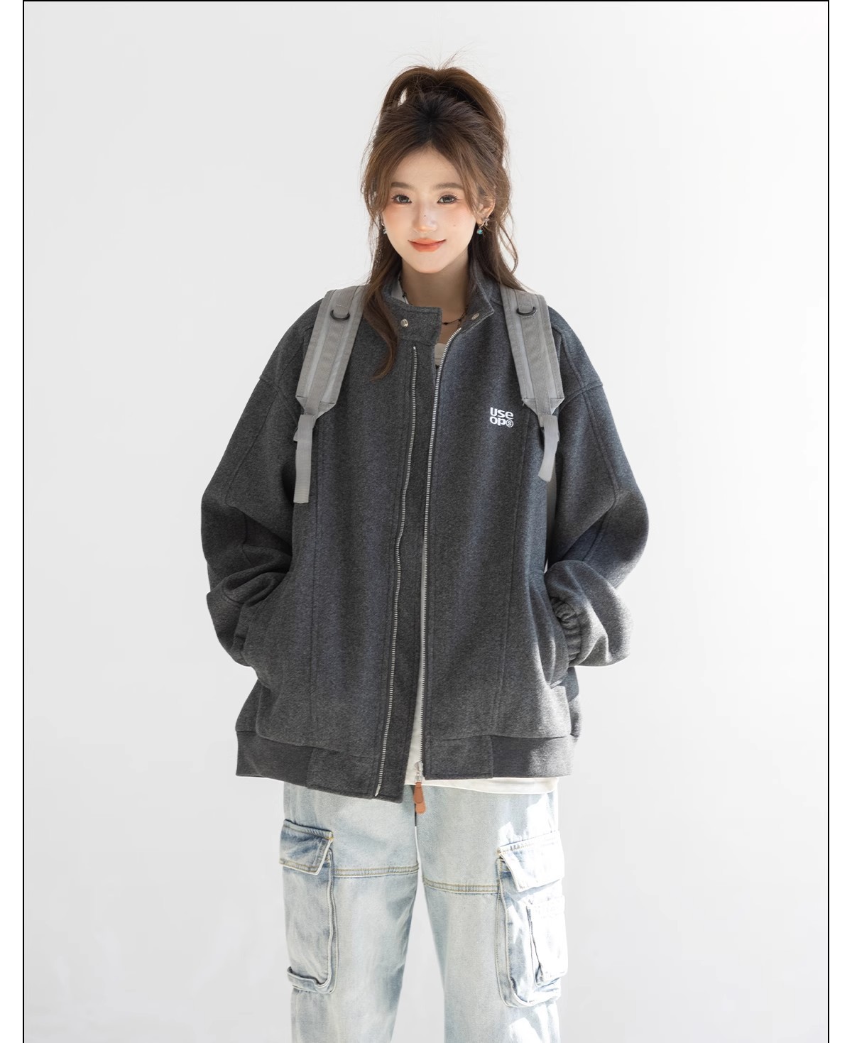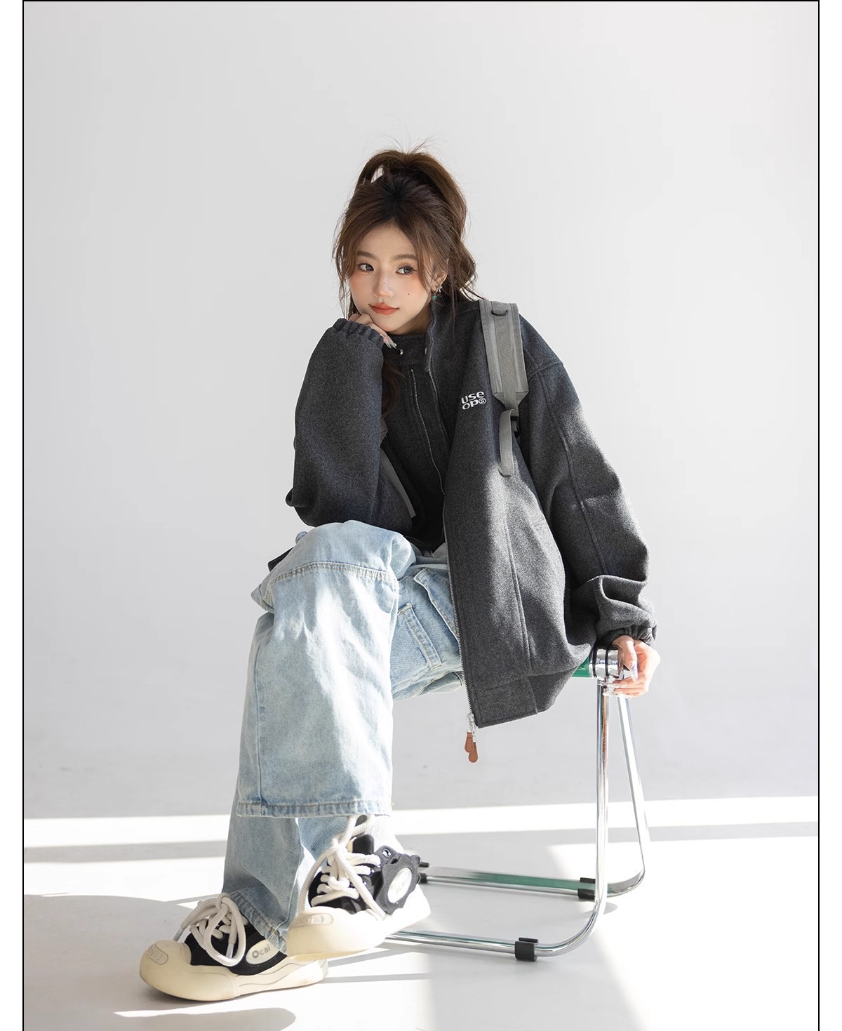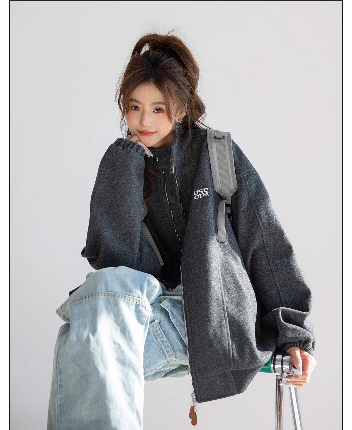 "CHANT2nd" 미국 스타일 게으른 세련된 모직 코트 여성의 봄과 가을 자수 편지 탑 칼라 재킷스토어 가기