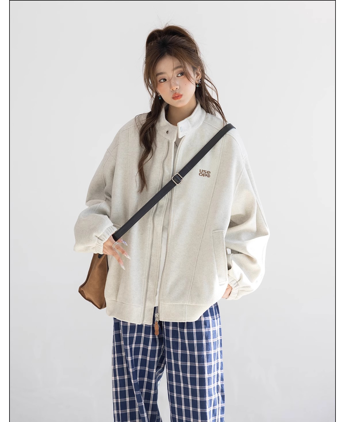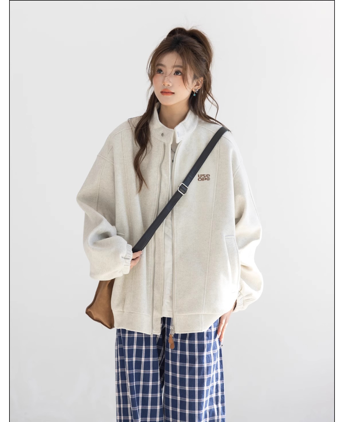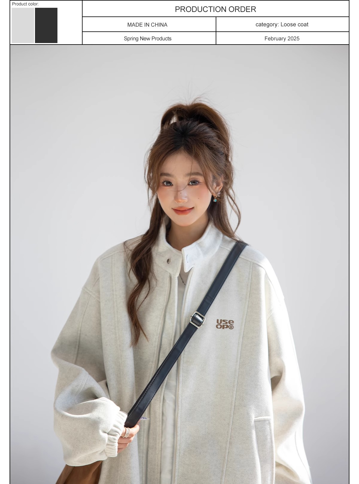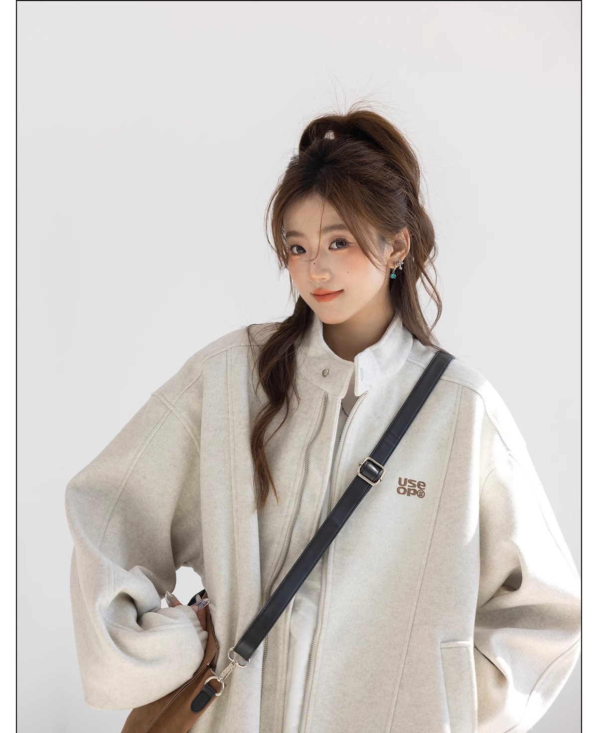 "CHANT2nd" 미국 스타일 게으른 세련된 모직 코트 여성의 봄과 가을 자수 편지 탑 칼라 재킷