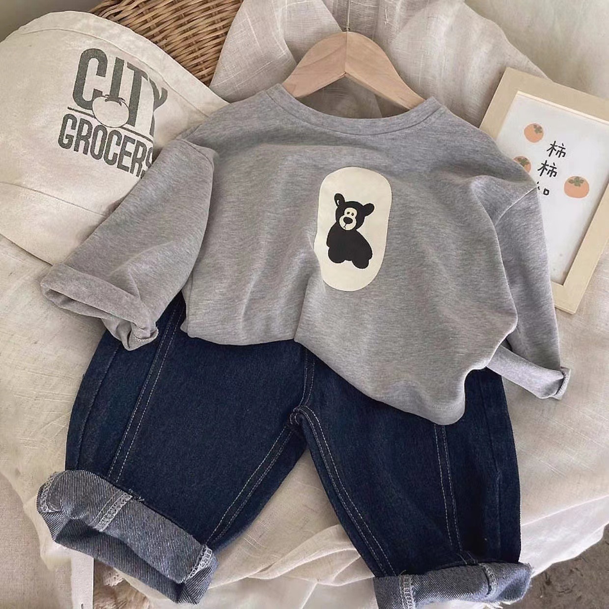 100 코튼 보이즈 잘 생긴 긴팔 티셔츠 2025 봄과 가을 새 어린이 아기 병아리 옷스토어 가기