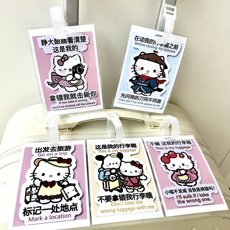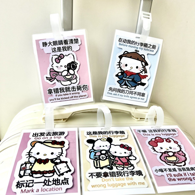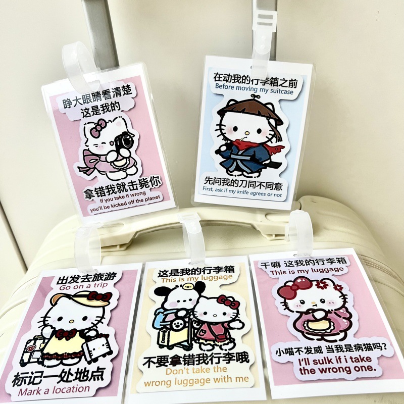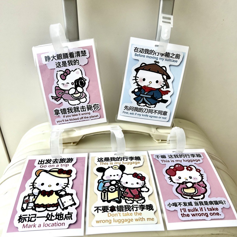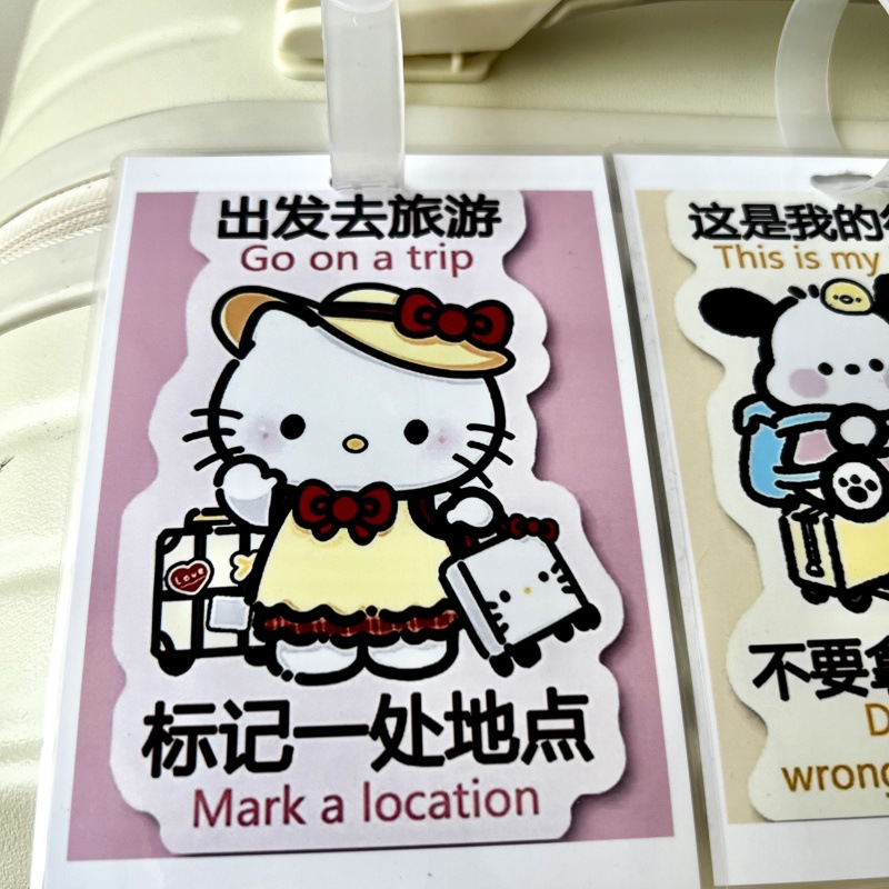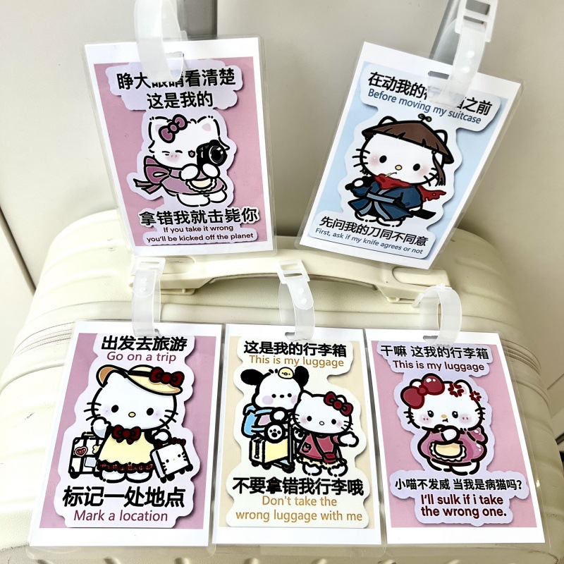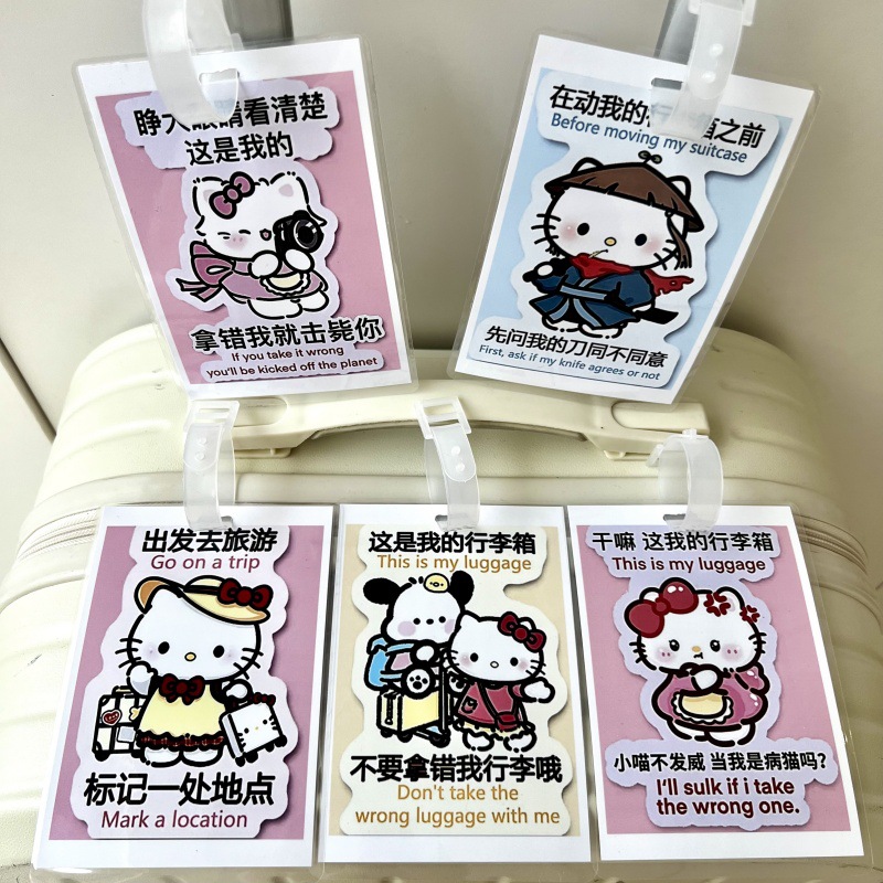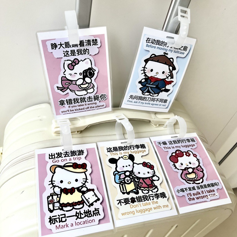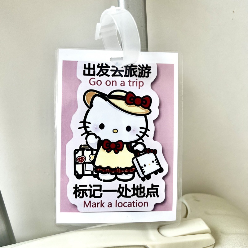 귀여운 헬로 키티 수하물 KT 고양이 학교 가방 매달려 장식 손실 방지 경고 카드 재미 여행스토어 가기