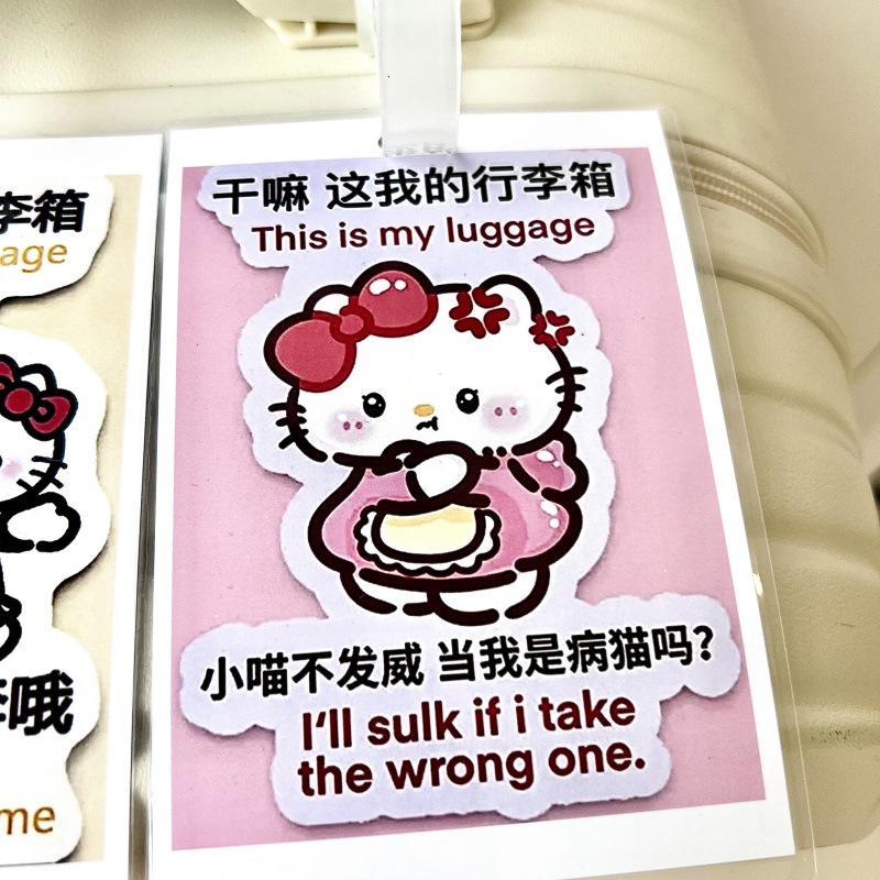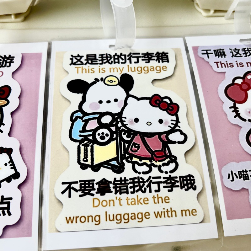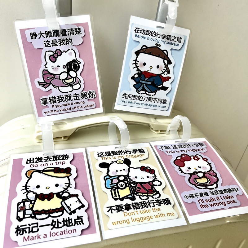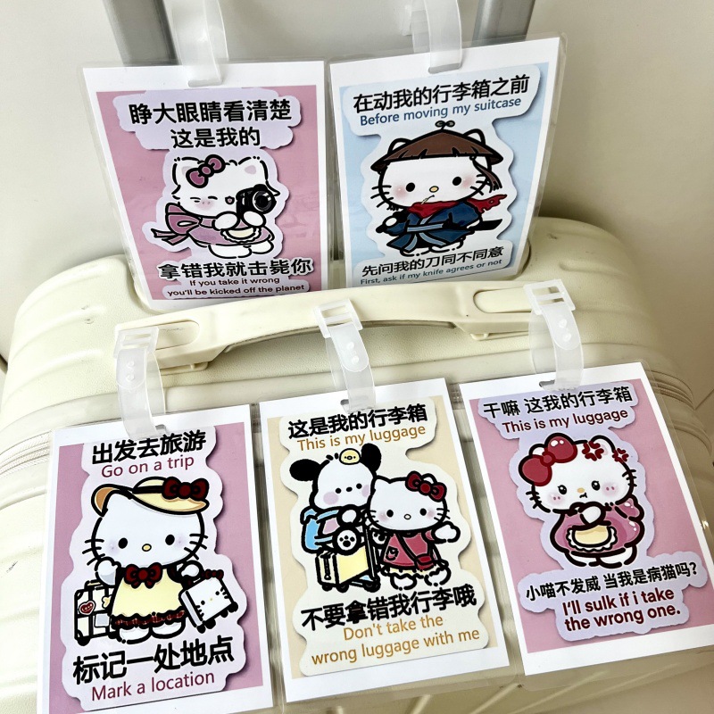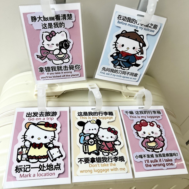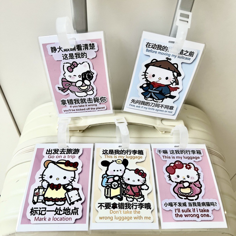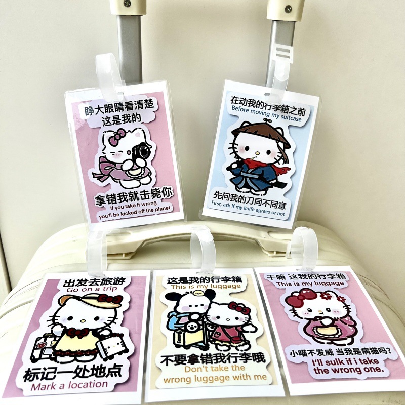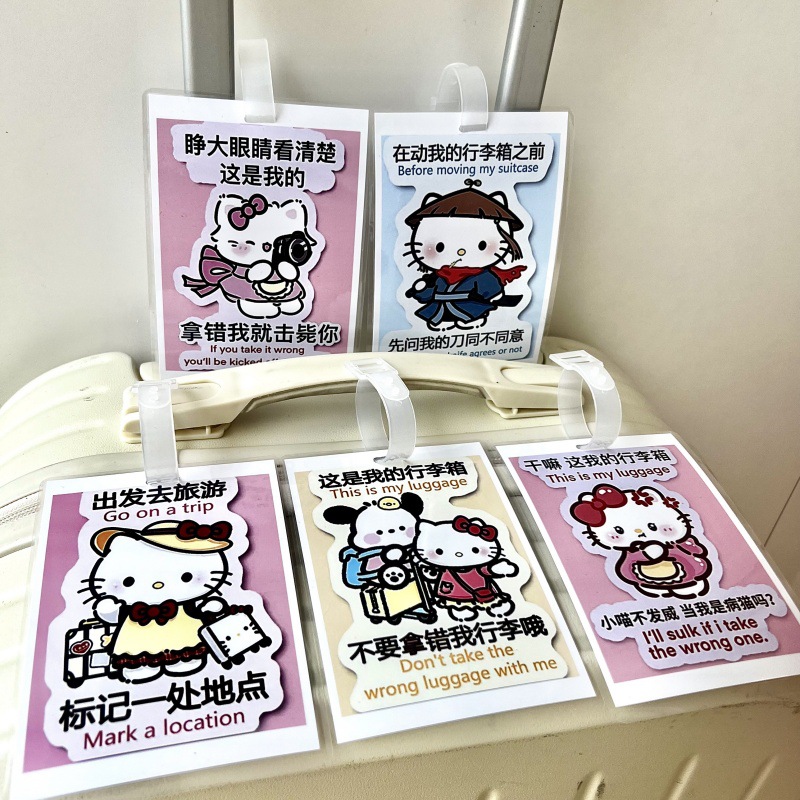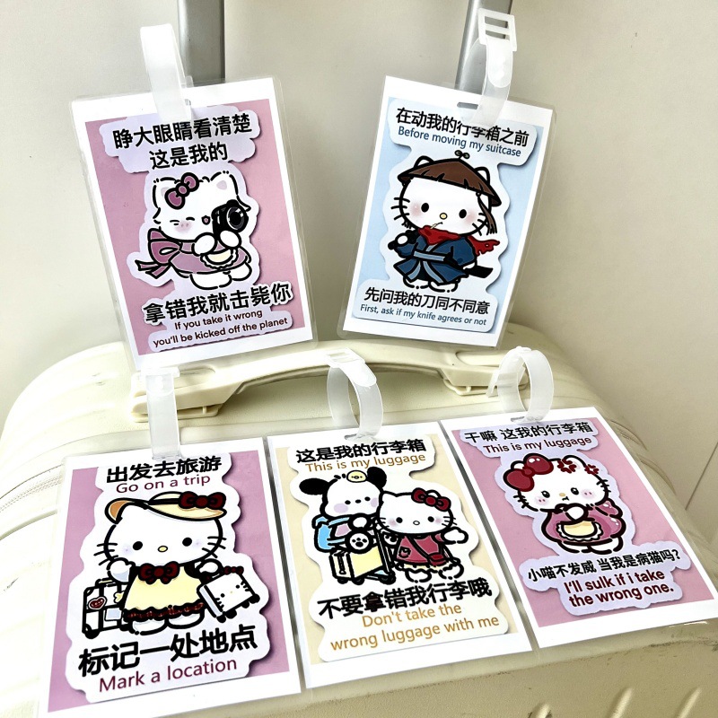 귀여운 헬로 키티 수하물 KT 고양이 학교 가방 매달려 장식 손실 방지 경고 카드 재미 여행스토어 가기