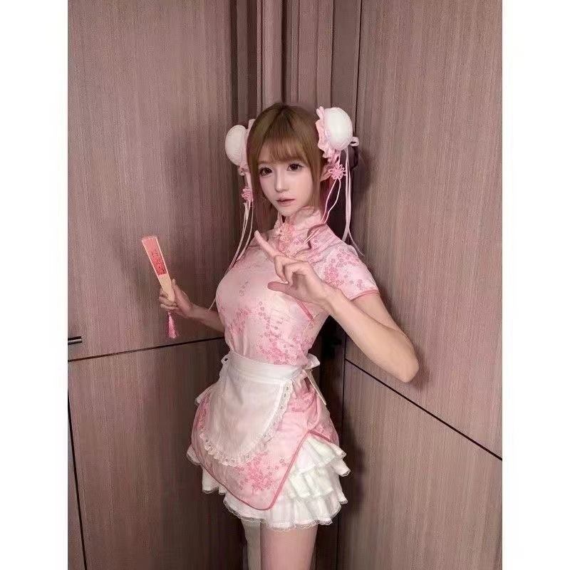 중화 니앙 청삼 섹시 속옷 앞치마 퓨어 메이드 투피스 메이드 일본 레트로 스커트 섹시 스커트스토어 가기