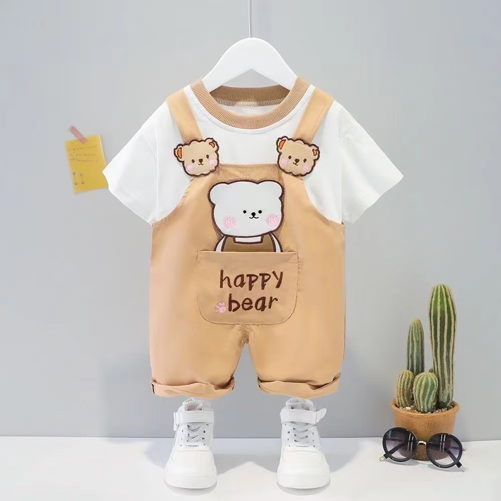 소년 만화 스트랩 반팔 세트 대외 무역 새로운 아기 어린이 서양식 투피스 아기 복장스토어 가기