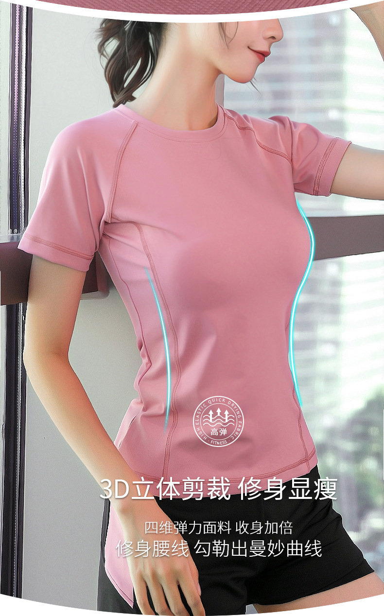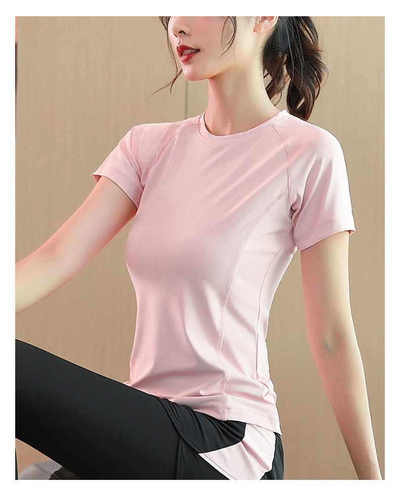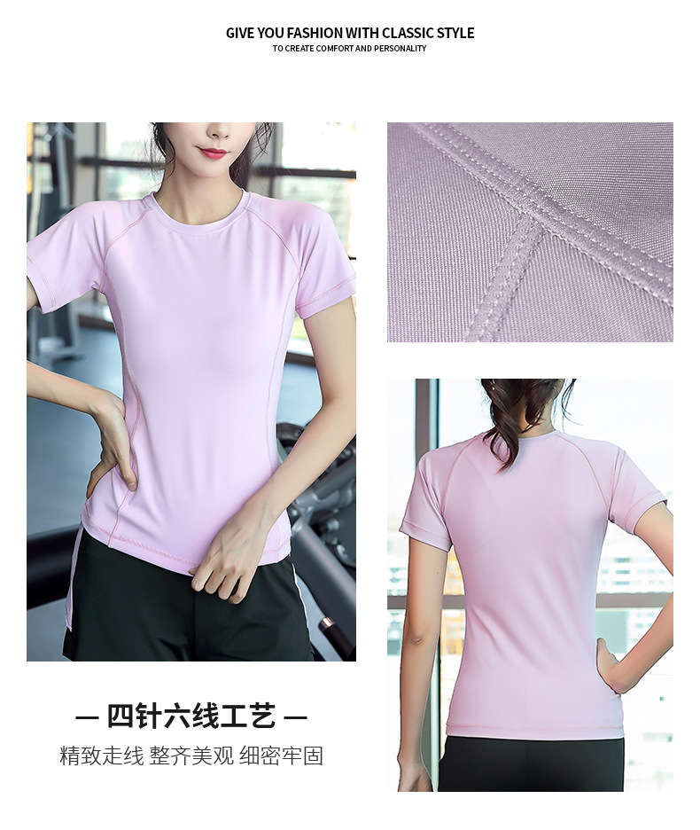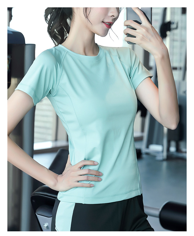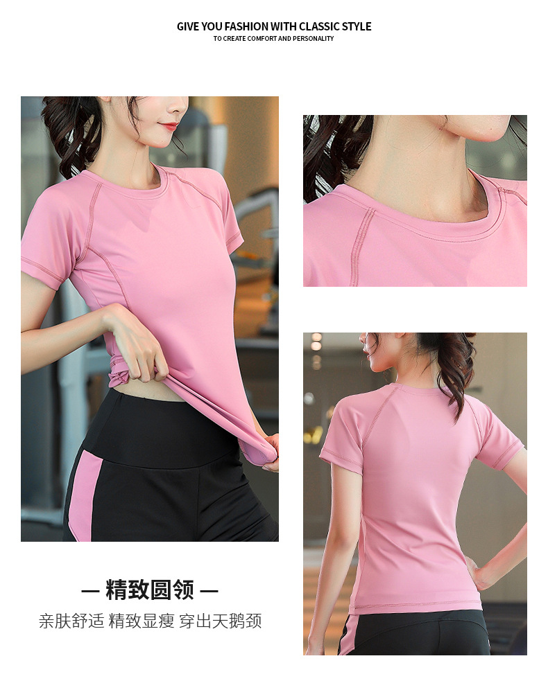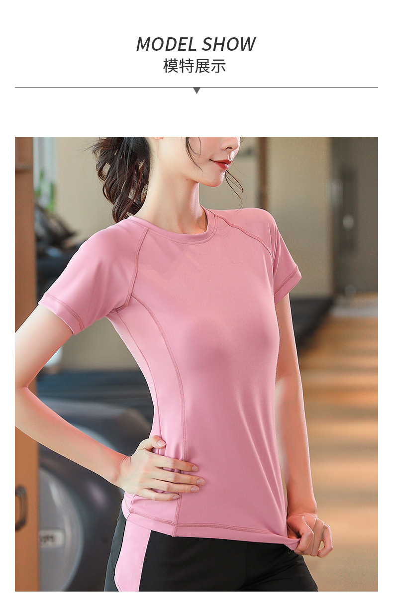 요가 의류 피트니스 반팔 티셔츠 여성용 통기성 피부 친화적 인 땀 흡수성 봄과 여름 얇은 달리기 스포츠 탑 탄성 빠른 건조
