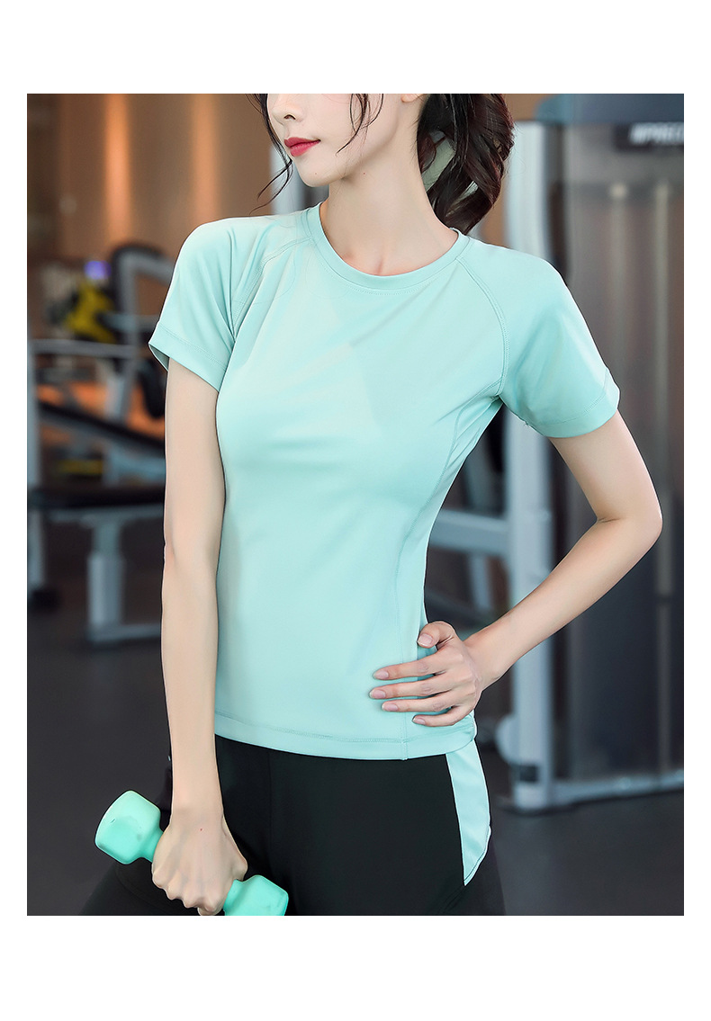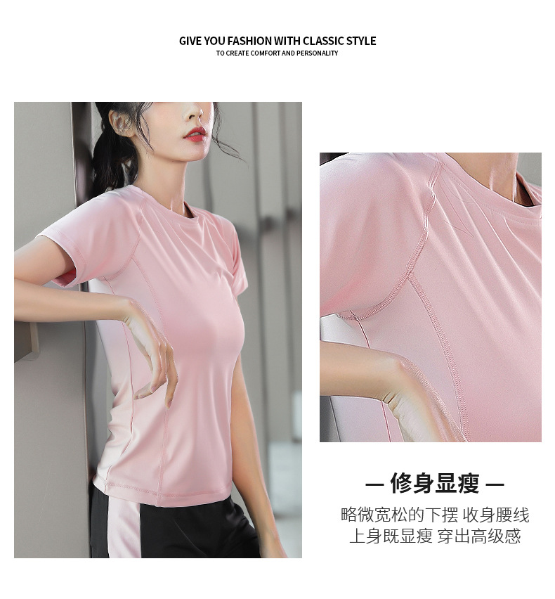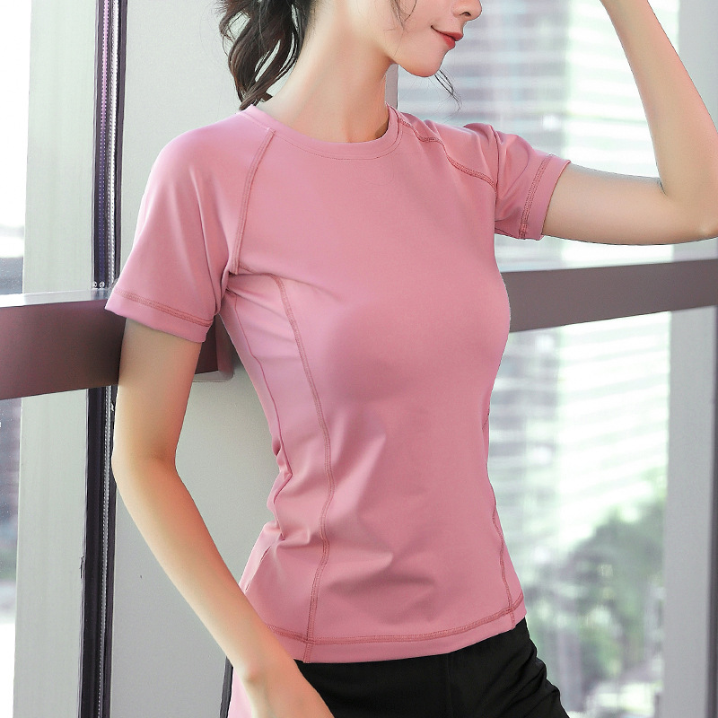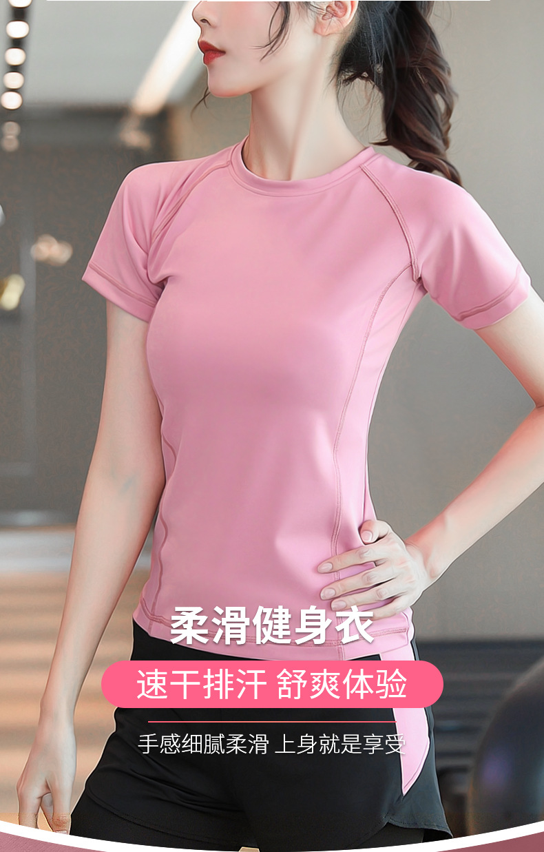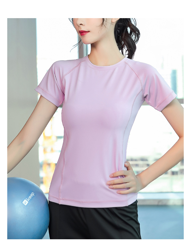 요가 의류 피트니스 반팔 티셔츠 여성용 통기성 피부 친화적 인 땀 흡수성 봄과 여름 얇은 달리기 스포츠 탑 탄성 빠른 건조