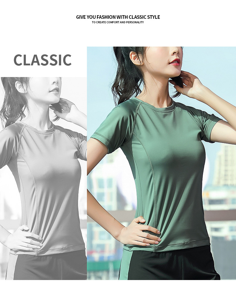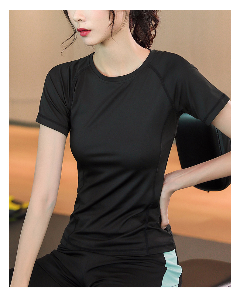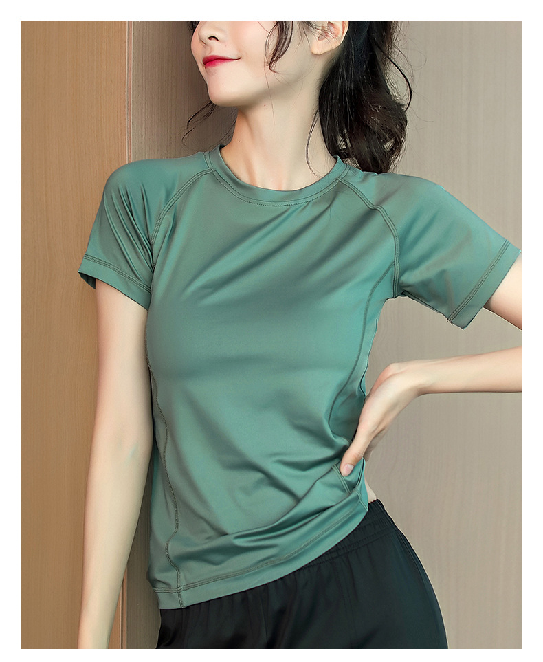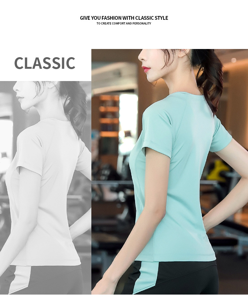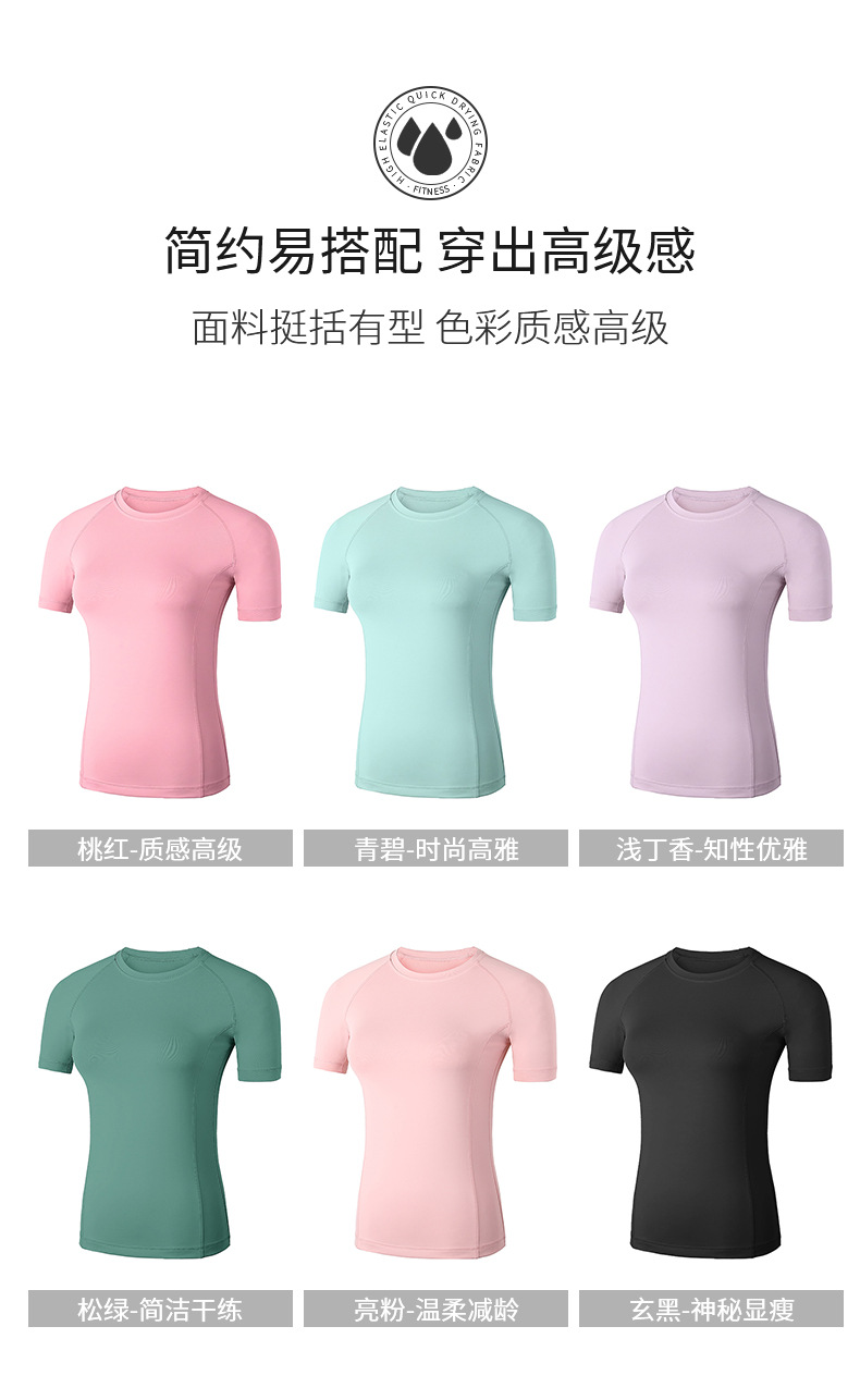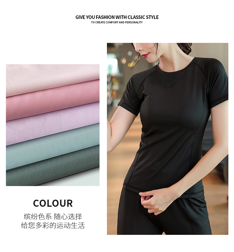 요가 의류 피트니스 반팔 티셔츠 여성용 통기성 피부 친화적 인 땀 흡수성 봄과 여름 얇은 달리기 스포츠 탑 탄성 빠른 건조