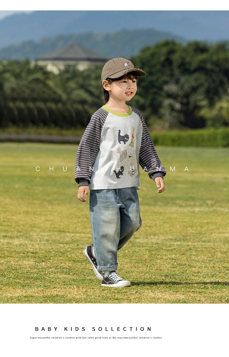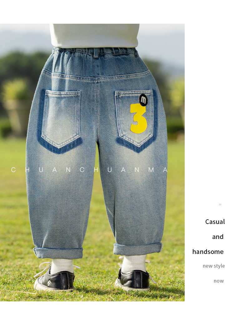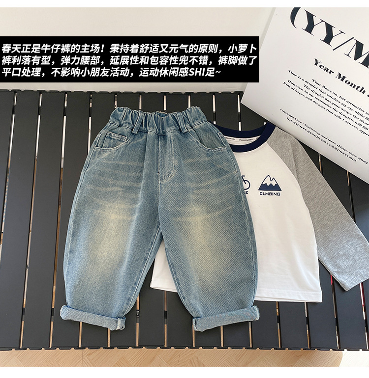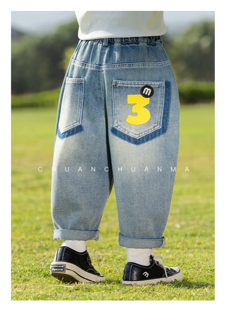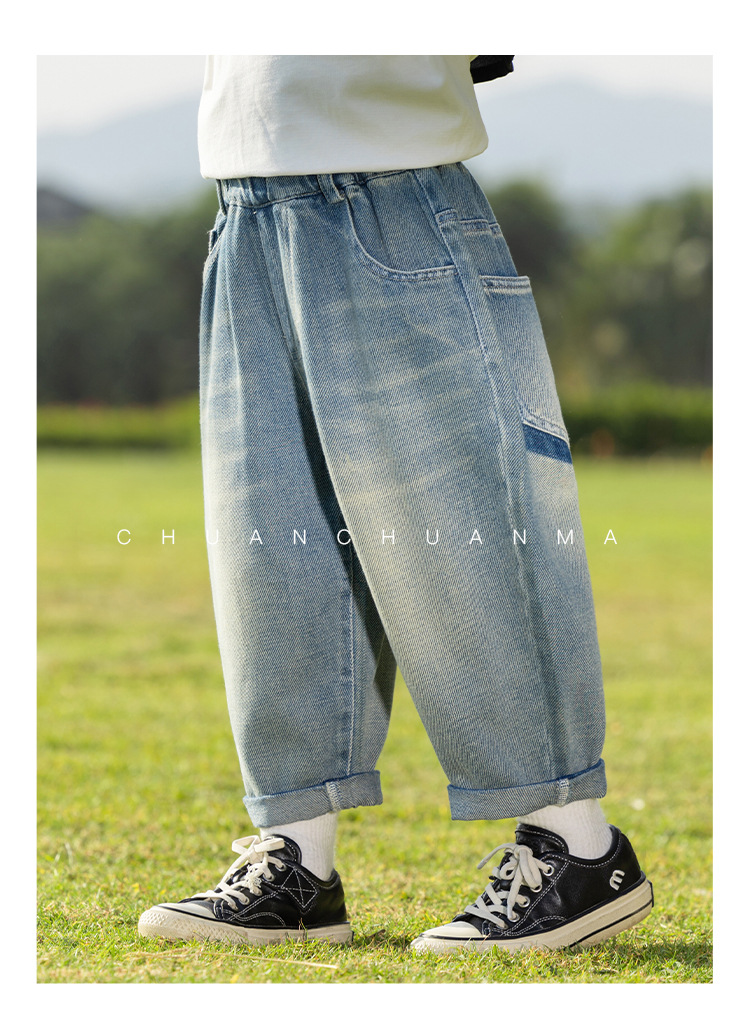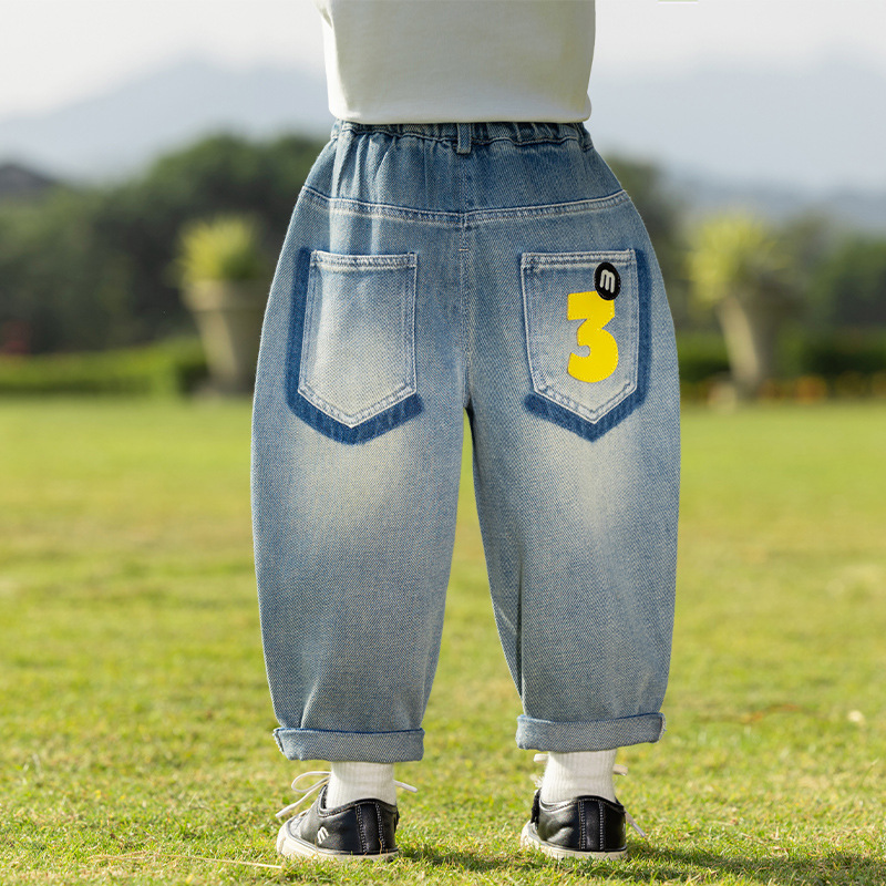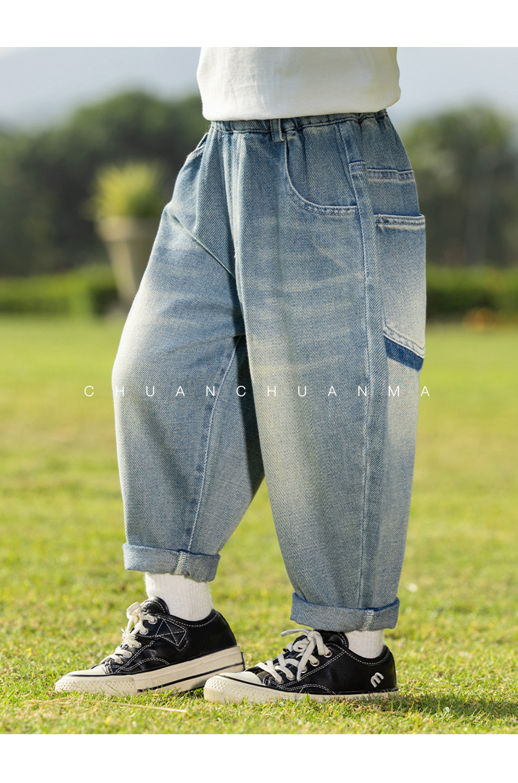 바람의 계곡 2025 봄 새 어린이 바지 한국식 맞춤형 포켓 청바지 소년 느슨한 라벨링 바지스토어 가기