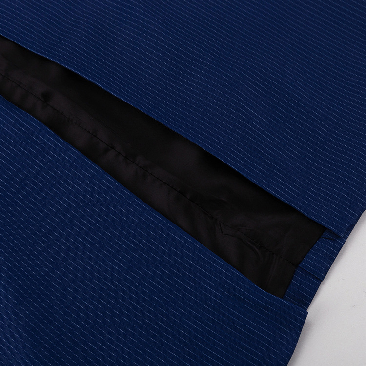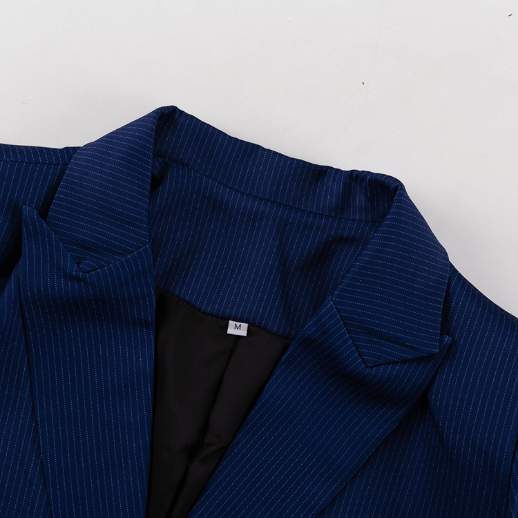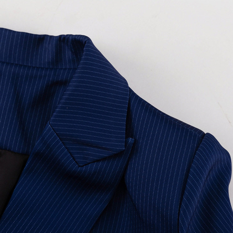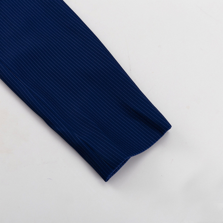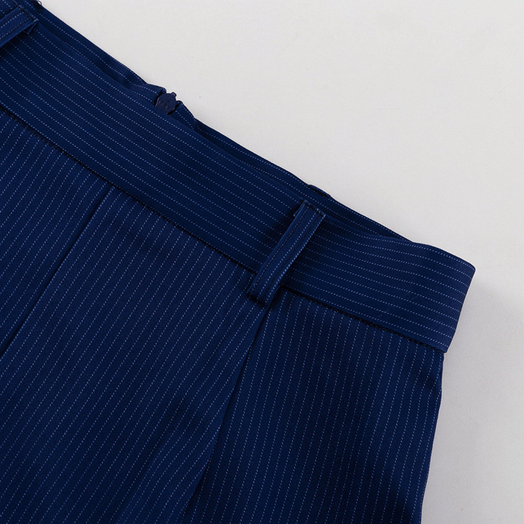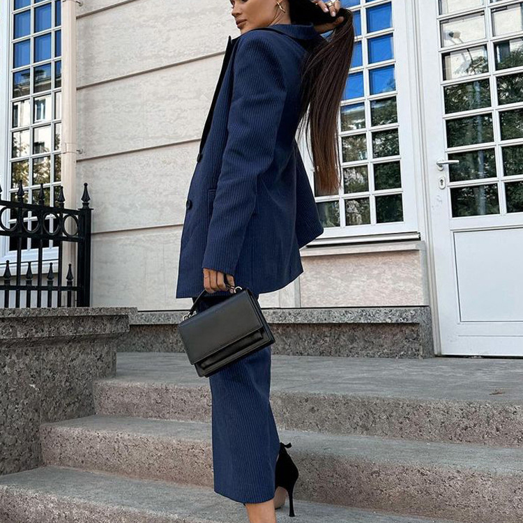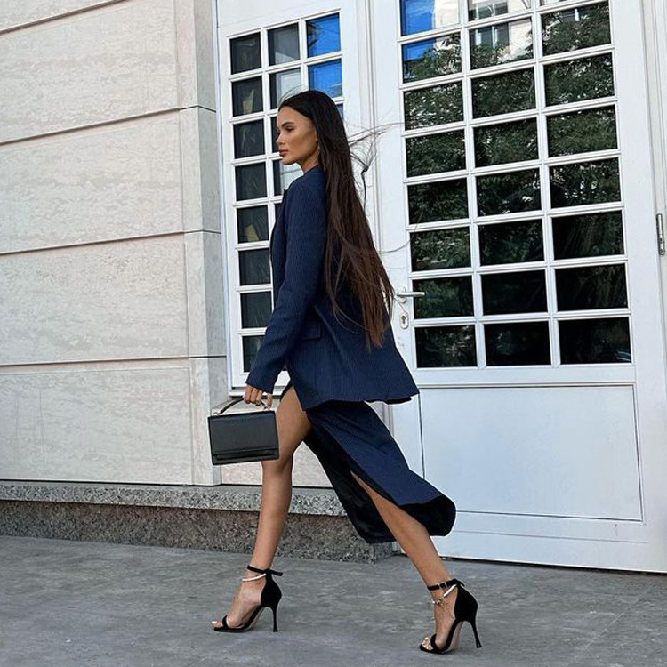 유럽과 미국의 패션 하이 엔드 센스 스트라이프 세트 여성용 옷깃 긴팔 탑 세트 하이 허리 스플릿 스커트 투피스 세트스토어 가기