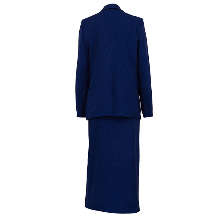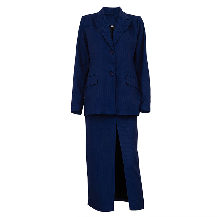 유럽과 미국의 패션 하이 엔드 센스 스트라이프 세트 여성용 옷깃 긴팔 탑 세트 하이 허리 스플릿 스커트 투피스 세트