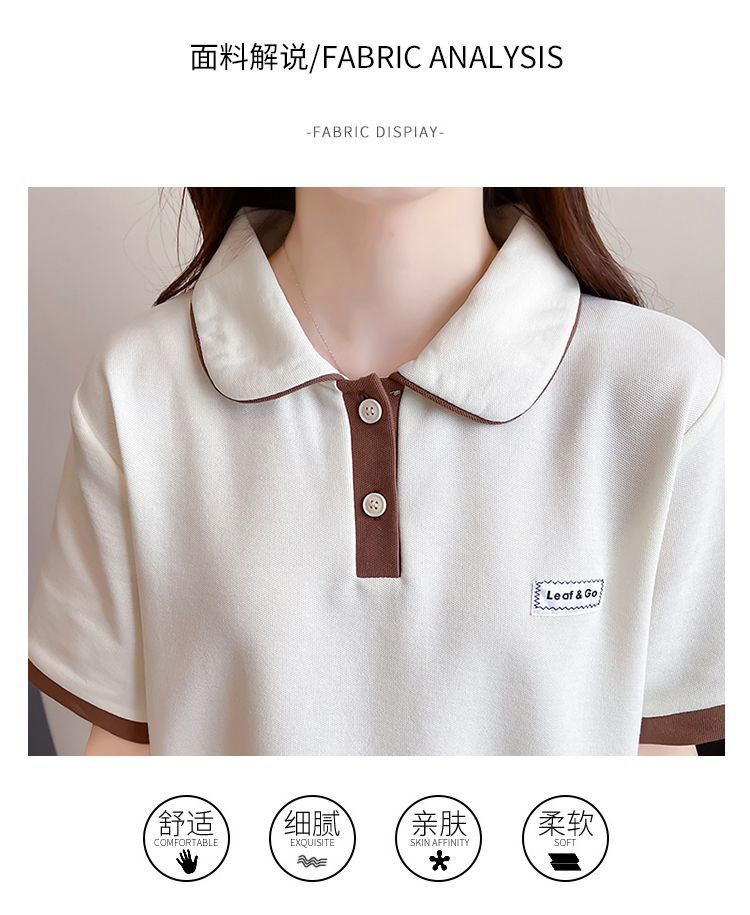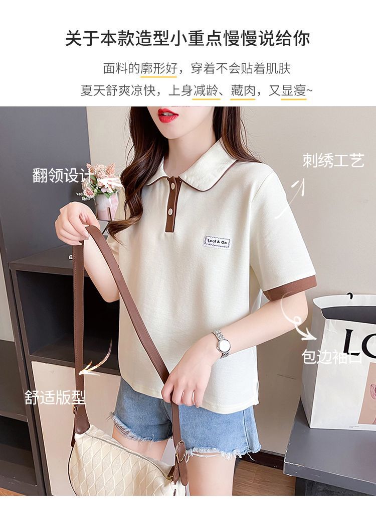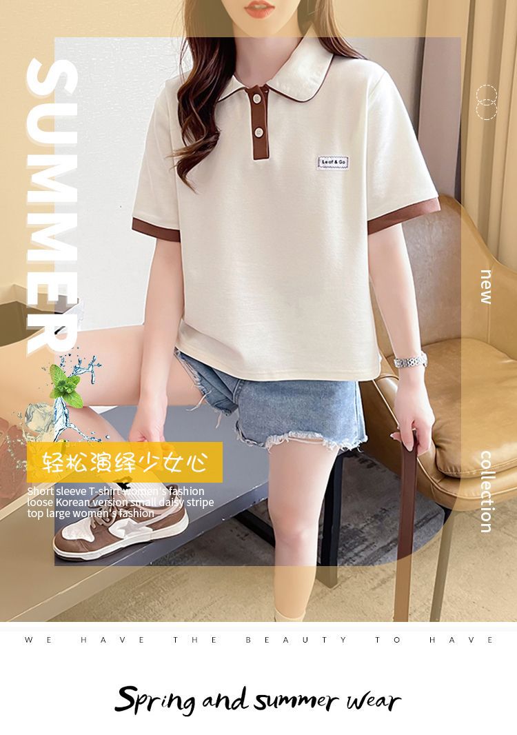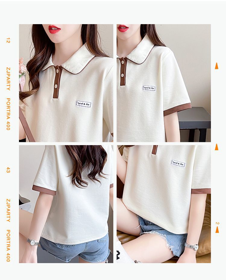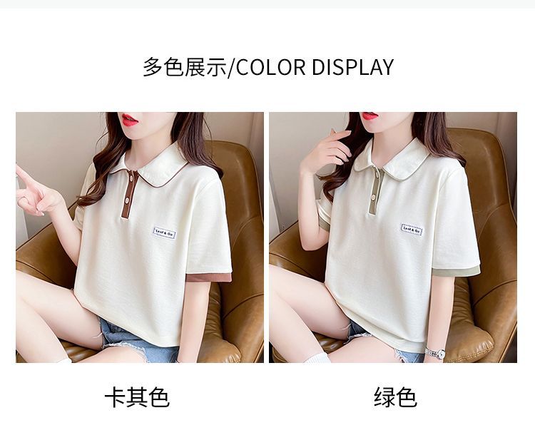 폴로 칼라 반팔 티셔츠 여성 여름 2025 여름 새로운 가짜 투피스 대학 스타일 느슨한 슬리밍 탑 여름 트렌디