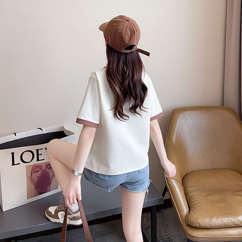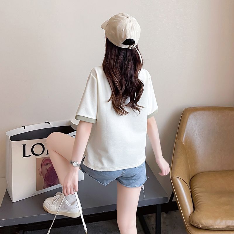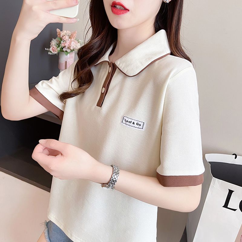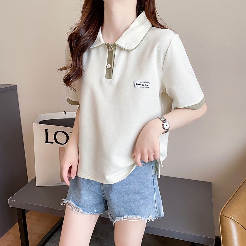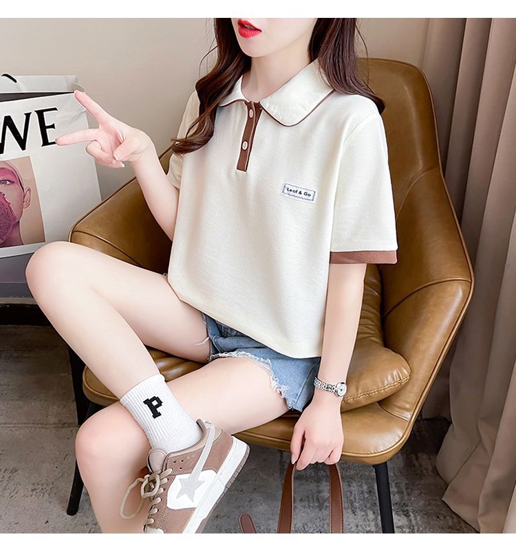 폴로 칼라 반팔 티셔츠 여성 여름 2025 여름 새로운 가짜 투피스 대학 스타일 느슨한 슬리밍 탑 여름 트렌디