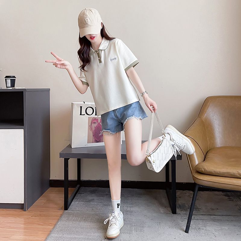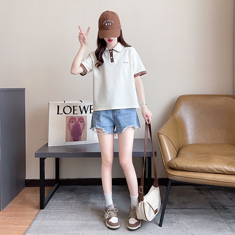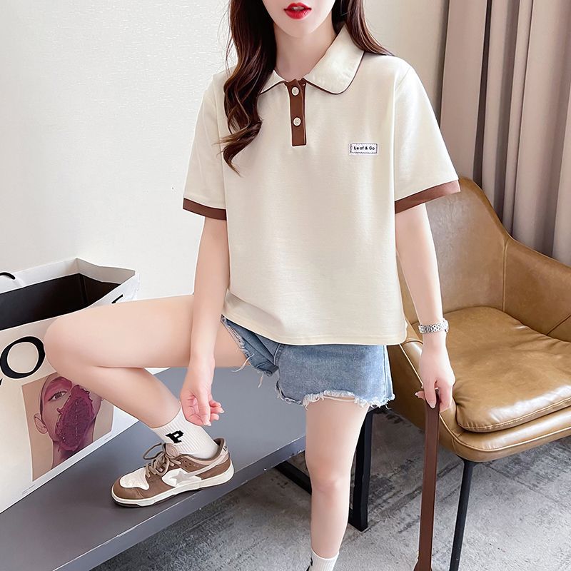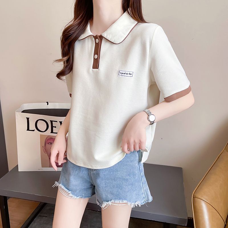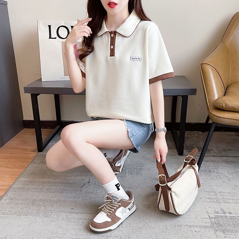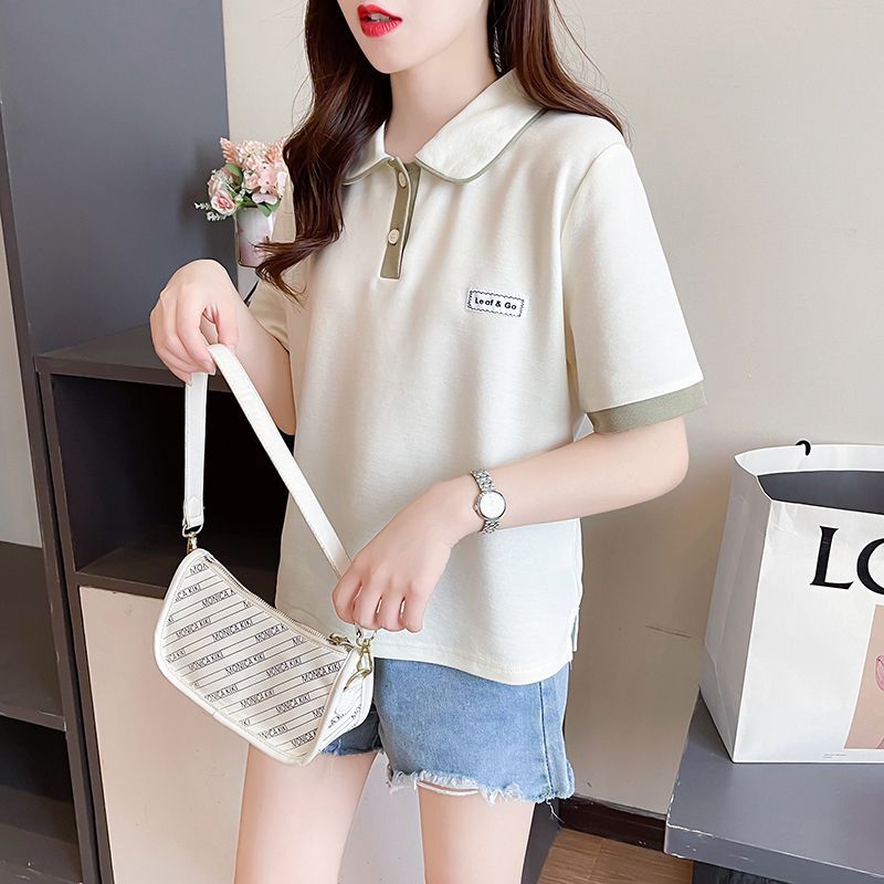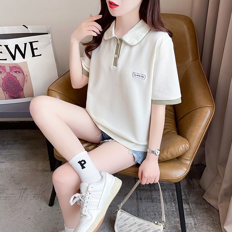 폴로 칼라 반팔 티셔츠 여성 여름 2025 여름 새로운 가짜 투피스 대학 스타일 느슨한 슬리밍 탑 여름 트렌디스토어 가기