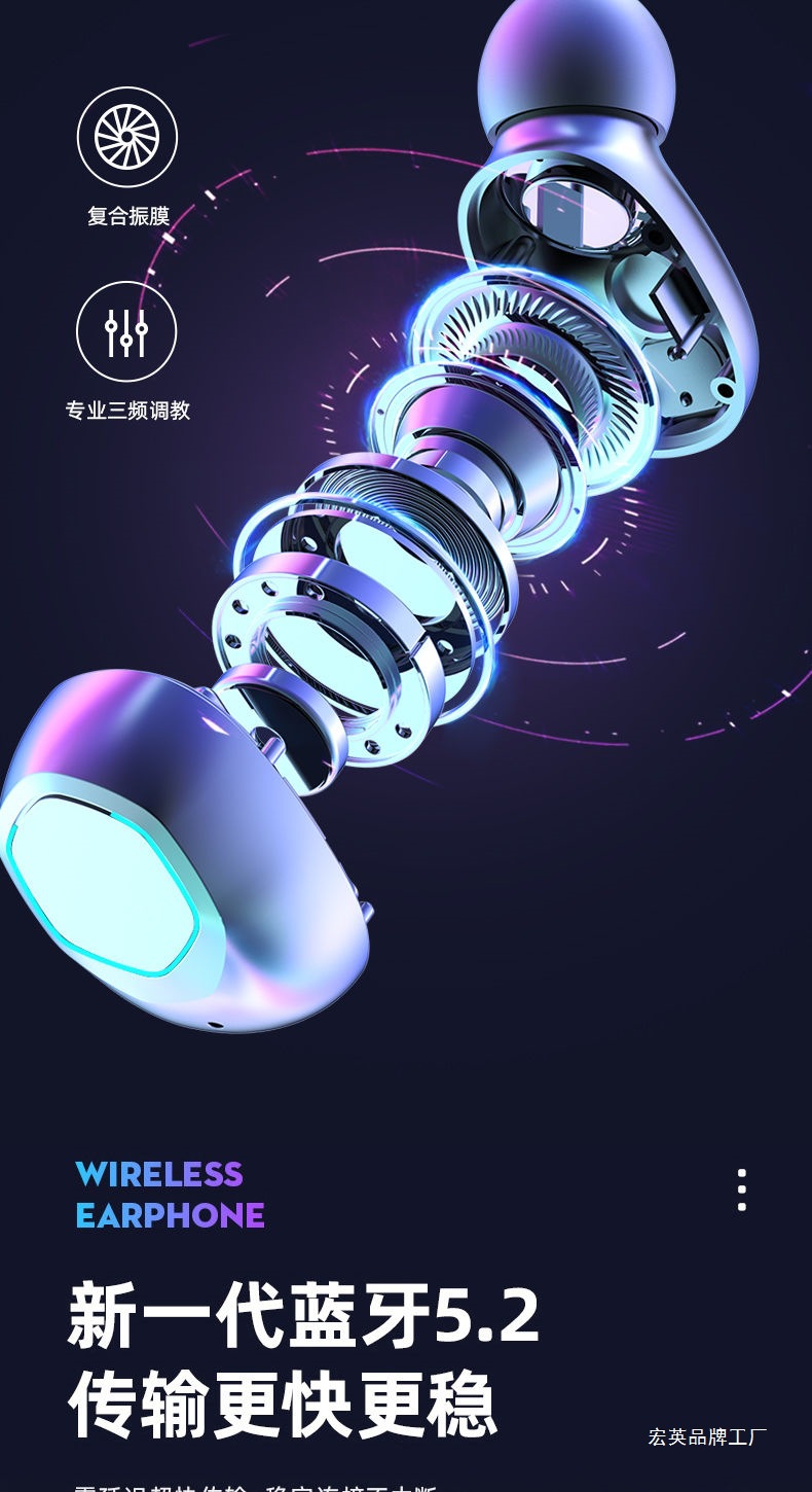 진정한 무선 새로운 블루투스 헤드셋 5.2 높은 음질 바이노럴 미니 스포츠 음악 소음 감소 긴 내구성스토어 가기