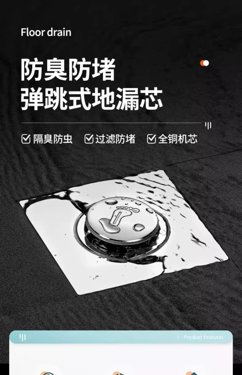 화장실 바닥 배수 탈취제 바운스 코어 밀봉 커버 하수도 파이프 반대로 반환 냄새 유니버설 프레스 발 유형
