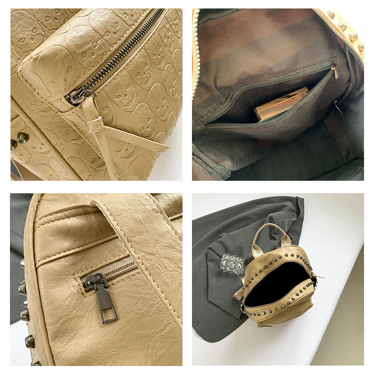 유행 직물 배낭 학생 해골 인쇄 부드러운 가죽 여행 가방 쇼핑 대용량 캠퍼스 가방 배낭
