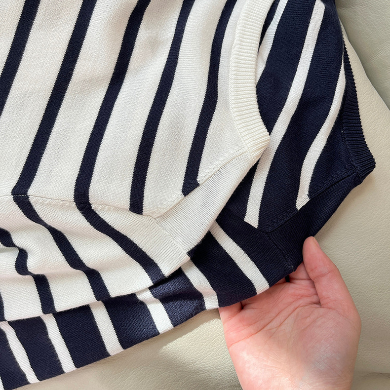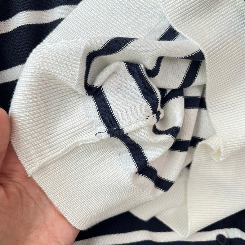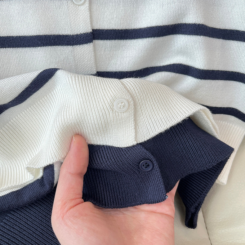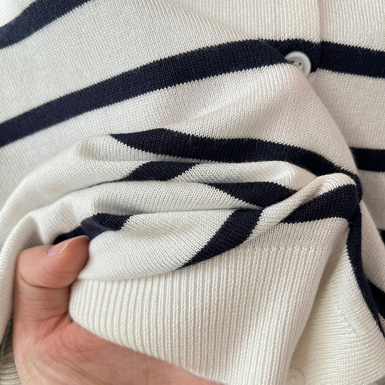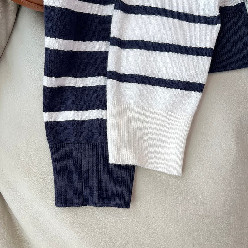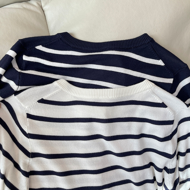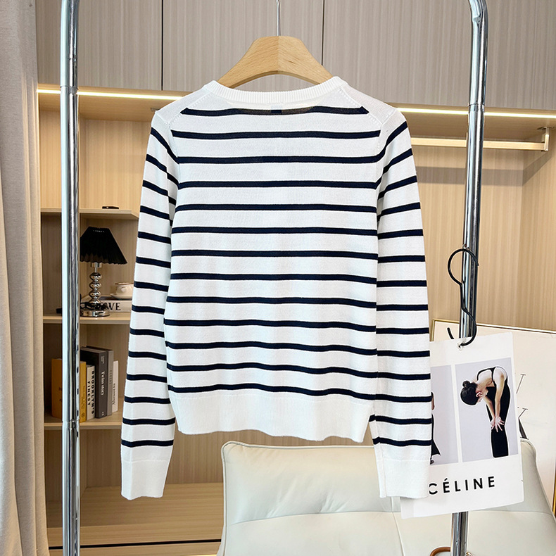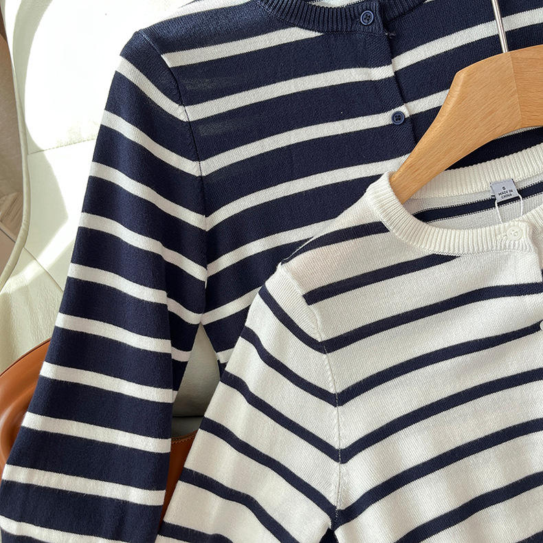 피팅 룸 여성 의류 25 이른 봄 코튼 블렌드 크루 넥 스트라이프 니트 카디건 여성용 긴 소매 에어컨베이스 셔츠 476975